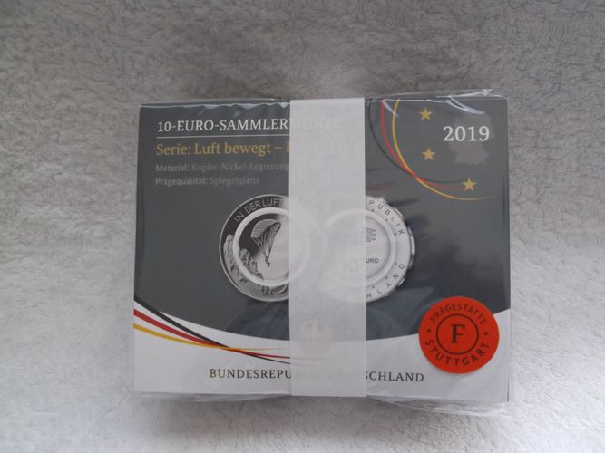 BRD 2019 - 10 Euro Gedenkmünzensatz - In der Luft - PP - alle Prägestellen - OVP