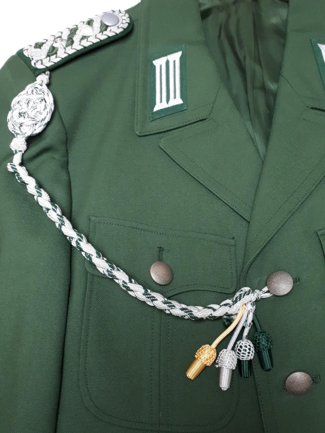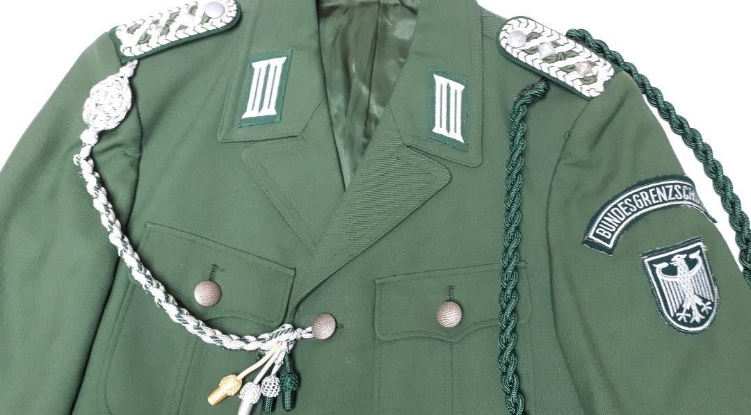 BRD BGS Bundesgrenzschutz Uniformjacke Stabsmeister K 66 * mit Achselschnur für Diensthabende * mit Schützenschnur mit 4 Leistungsstufen * Maße: - Ärmellänge: ca. 64 cm - Brustumfang: ca. 104 cm - Rückenlänge: ca. 75 cm Zustand: gut - gebraucht mit kleinen Gebrauchsspuren (im Jackeninneren befindet sich linkerhand unten ein kleines Loch)