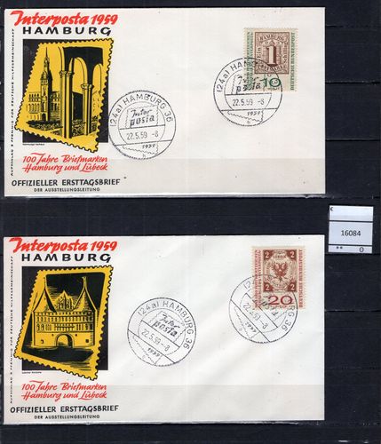 BRD Bund 1959 Interposta, Hamburg FDC MiNr. 310 a + 311 a Ersttagssonderstempel Hamburg Michelkatalogpreis 6,-€ Ich löse meine umfangreiche Briefmarkensammlung auf. Beim Kauf mehrer Artikel zahlen Sie nur die tatsächlich anfallenden Versandkosten, diese richten sich nach dem Gewicht der Sendung
