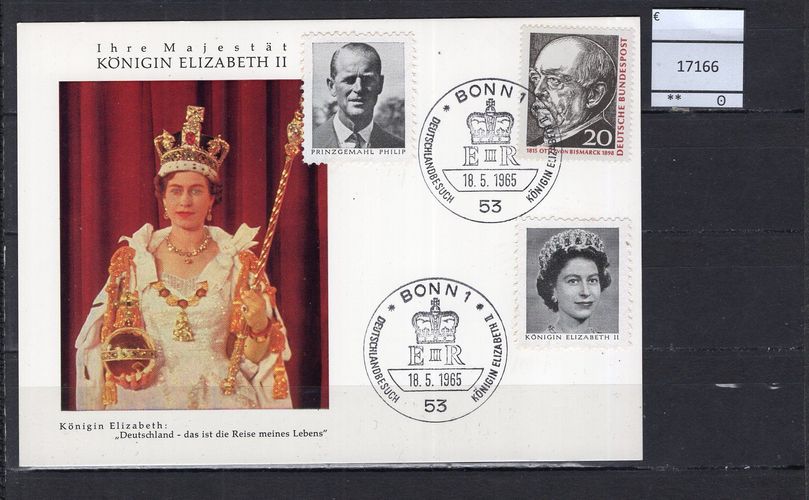 BRD / Bund 1965 Sonderpostkarte Staatsbesuch Königin Elisabeth mit MiNr. 463 Bonn