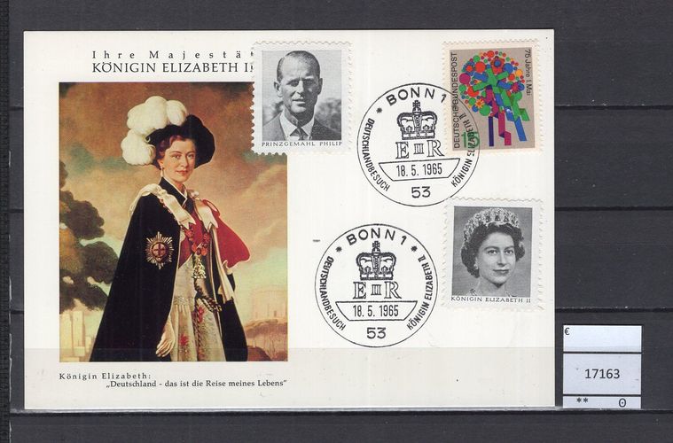 BRD / Bund 1965 Sonderpostkarte Staatsbesuch Königin Elisabeth mit MiNr. 475 Bonn