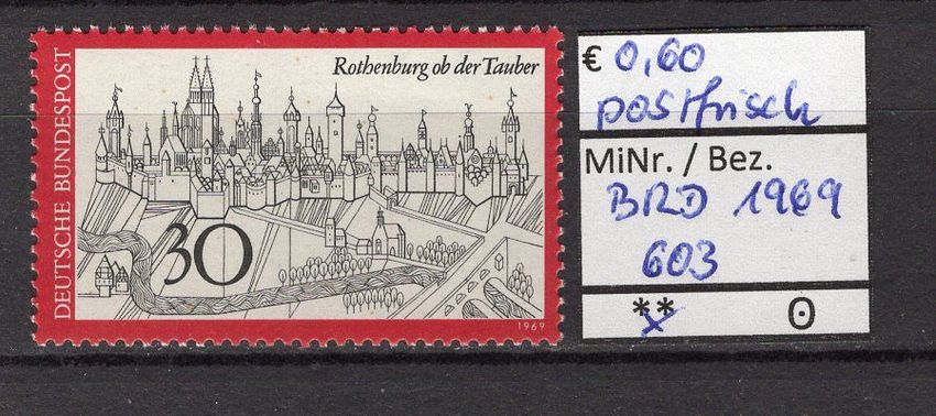 BRD Bund 1969 Fremdenverkehr (I) MiNr. 603 postfrisch Michelkatalogpreis 0,60€ Ich löse meine umfangreiche Briefmarkensammlung auf. Beim Kauf mehrer Artikel zahlen Sie nur die tatsächlich anfallenden Versandkosten, diese richten sich nach dem Gewicht der Sendung und den gültigen Versandpreisen