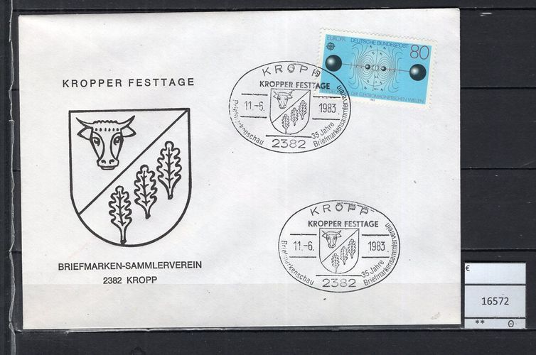 BRD Bund 1983 Sonderbeleg Kropper Festtage Schmuck-Beleg mit MiNr. 1176 Sonderstempel Kropp Michelkatalogpreis -€ Ich löse meine umfangreiche Briefmarkensammlung auf. Beim Kauf mehrer Artikel zahlen Sie nur die tatsächlich anfallenden Versandkosten, diese richten sich nach dem Gewicht der Sendu