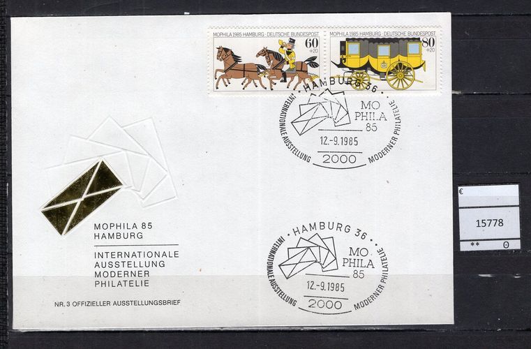 BRD Bund 1985 Ausstellungsbeleg Nr. 3 Naposta 85, Hamburg Offizieller Ausstellungsbeleg Nr. 3 mit waagerechtem Zusammendruck W Zd 5 Sonderstempel Hamburg 12.9.1985 Michelkatalogpreis -€ Ich löse meine umfangreiche Briefmarkensammlung auf. Beim Kauf mehrer Artikel zahlen Sie nur die tatsächlich