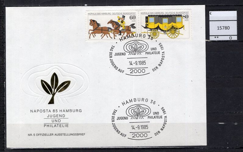BRD Bund 1985 Ausstellungsbeleg Nr. 5 Naposta 85, Hamburg Offizieller Ausstellungsbeleg Nr. 5 mit waagerechtem Zusammendruck W Zd 5 Sonderstempel Hamburg 14.9.1985 Michelkatalogpreis -€ Ich löse meine umfangreiche Briefmarkensammlung auf. Beim Kauf mehrer Artikel zahlen Sie nur die tatsächlich