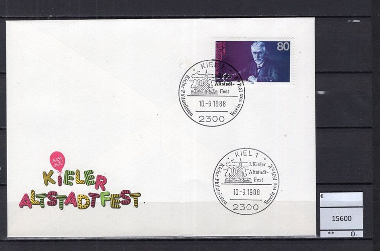 BRD Bund 1988 Sonderbeleg 1. Kieler Altstadtfest Sonderbeleg mit MiNr. 1382 Sonderstempel Kiel Michelkatalogpreis -€ Ich löse meine umfangreiche Briefmarkensammlung auf. Beim Kauf mehrer Artikel zahlen Sie nur die tatsächlich anfallenden Versandkosten, diese richten sich nach dem Gewicht der Se