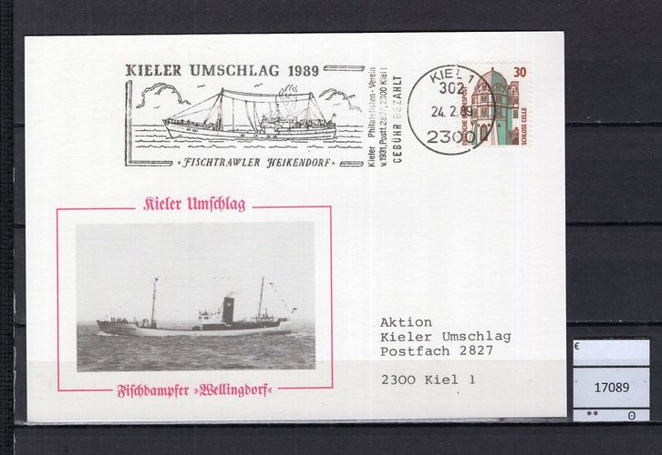 BRD / Bund 1989 Ausstellungs-PK Kieler Umschlag 1989 mit MiNr. 1339 A gelaufen