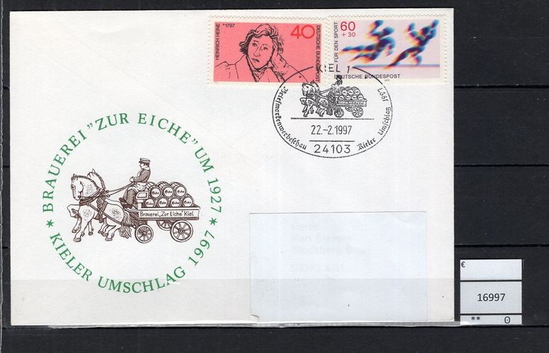BRD / Bund 1997 Ausstellungsbeleg Kieler Umschlag 1997 mit MiNr. 750 + 1009 gelaufen