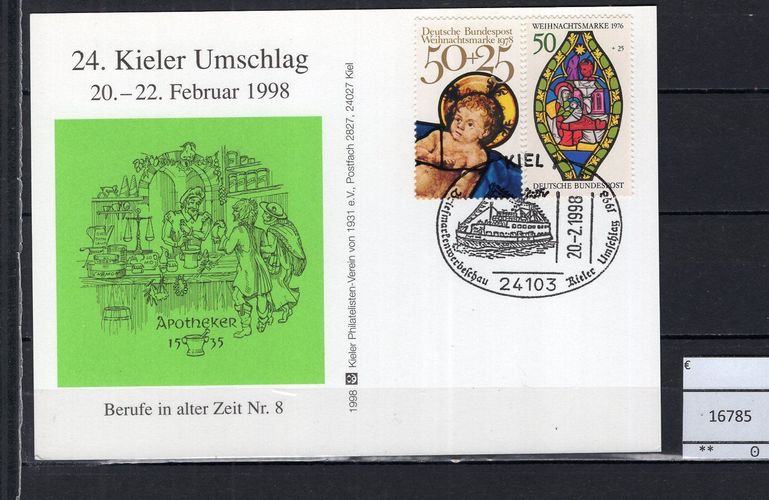 BRD Bund 1998 Ausstellungspostkarte 24.Kieler Umschlag Ausstellungspostkarte mit MiNr. 912 + 989 Sonderstempel Kiel Michelkatalogpreis -€ Ich löse meine umfangreiche Briefmarkensammlung auf. Beim Kauf mehrer Artikel zahlen Sie nur die tatsächlich anfallenden Versandkosten, diese richten sich na