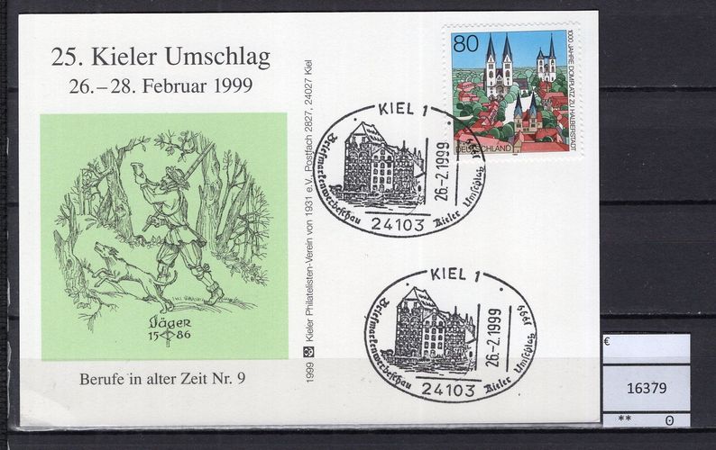 BRD Bund 1999 Ausstellungspostkarte 25. Kieler Umschlag Ausstellungspostkarte mit MiNr. 1846 Sonderstempel Kiel Michelkatalogpreis -€ Ich löse meine umfangreiche Briefmarkensammlung auf. Beim Kauf mehrer Artikel zahlen Sie nur die tatsächlich anfallenden Versandkosten, diese richten sich nach d