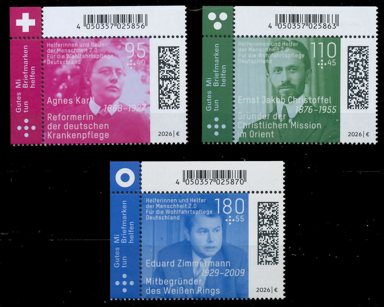 BRD BUND 2026 Nr 3945-3947 postfrisch ECKE-OLI 5,25 3,85 Euro Wert aus der Ausgabe Helferinnen und Helfer der Menschheit 9.08€ incl. MwSt: Differenzbesteuert zzgl. Versandkosten Bestell-Nr.: A6D1C2 Katalog-Nr: MICHEL (3945 - 3947) Katalogpreis: 10,50 EUR Qualität: Normal Erhaltung: Postfrisch *