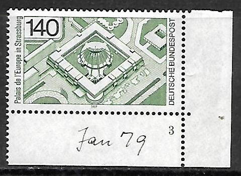 BRD postfrisch Michel-Nummer 921 rechtes unteres Eckrandstück