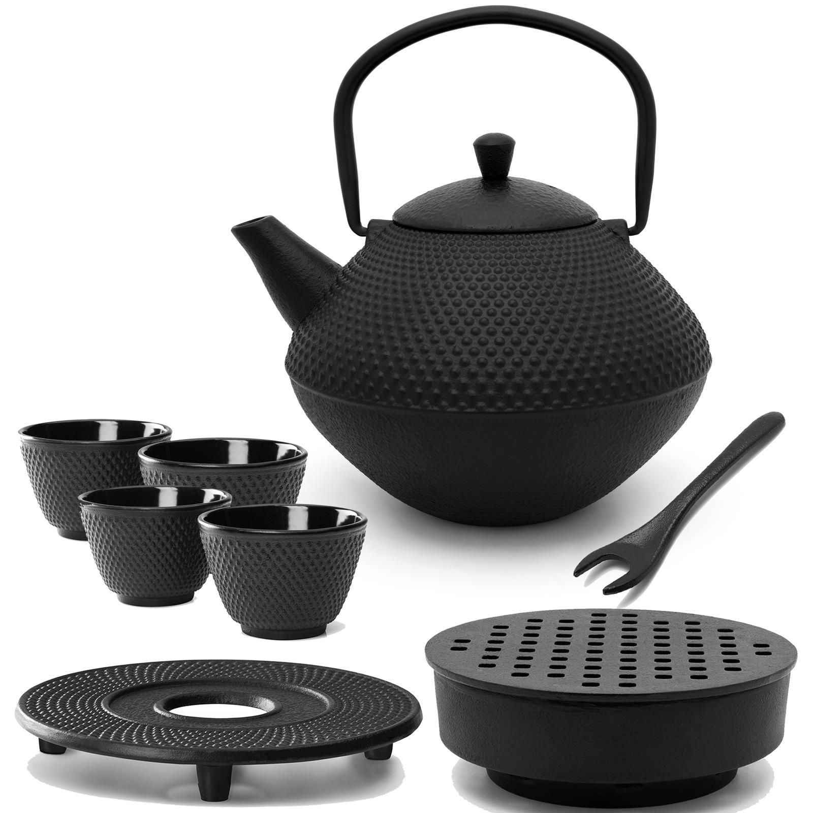 Bredemeijer Bredemeijer Asia Gusseisen Teekanne Set schwarz 1L Stövchen 4 Becher Untersetzer Deck
