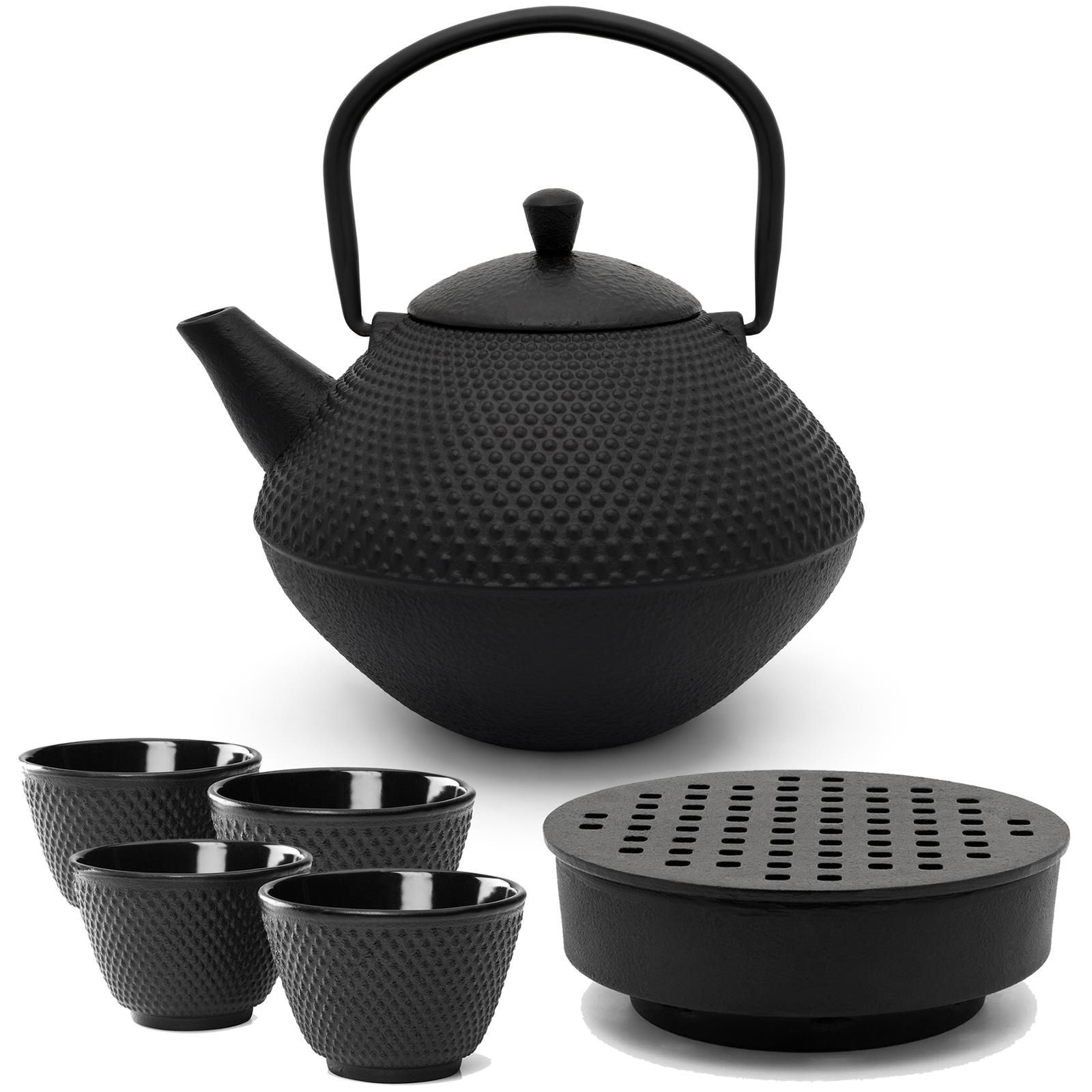 Bredemeijer Bredemeijer Asia Gusseisen Teekannen Set schwarz 1 L Teekessel mit Stövchen 4 Teebech