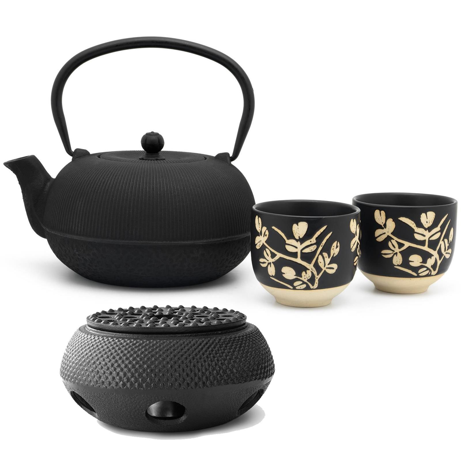 Bredemeijer Bredemeijer Asia Tee Set Gusseisen 1,0 L Teekanne mit Stövchen 2 Teebecher aus Porzel