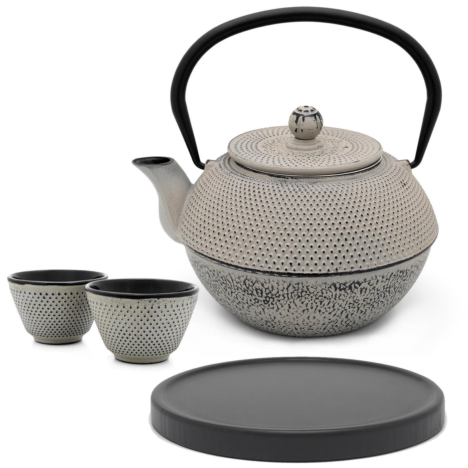Bredemeijer Bredemeijer Asia Teekanne Gusseisen 1,1 L grau Tee-Set 2 Teebecher mit Holz Untersetz