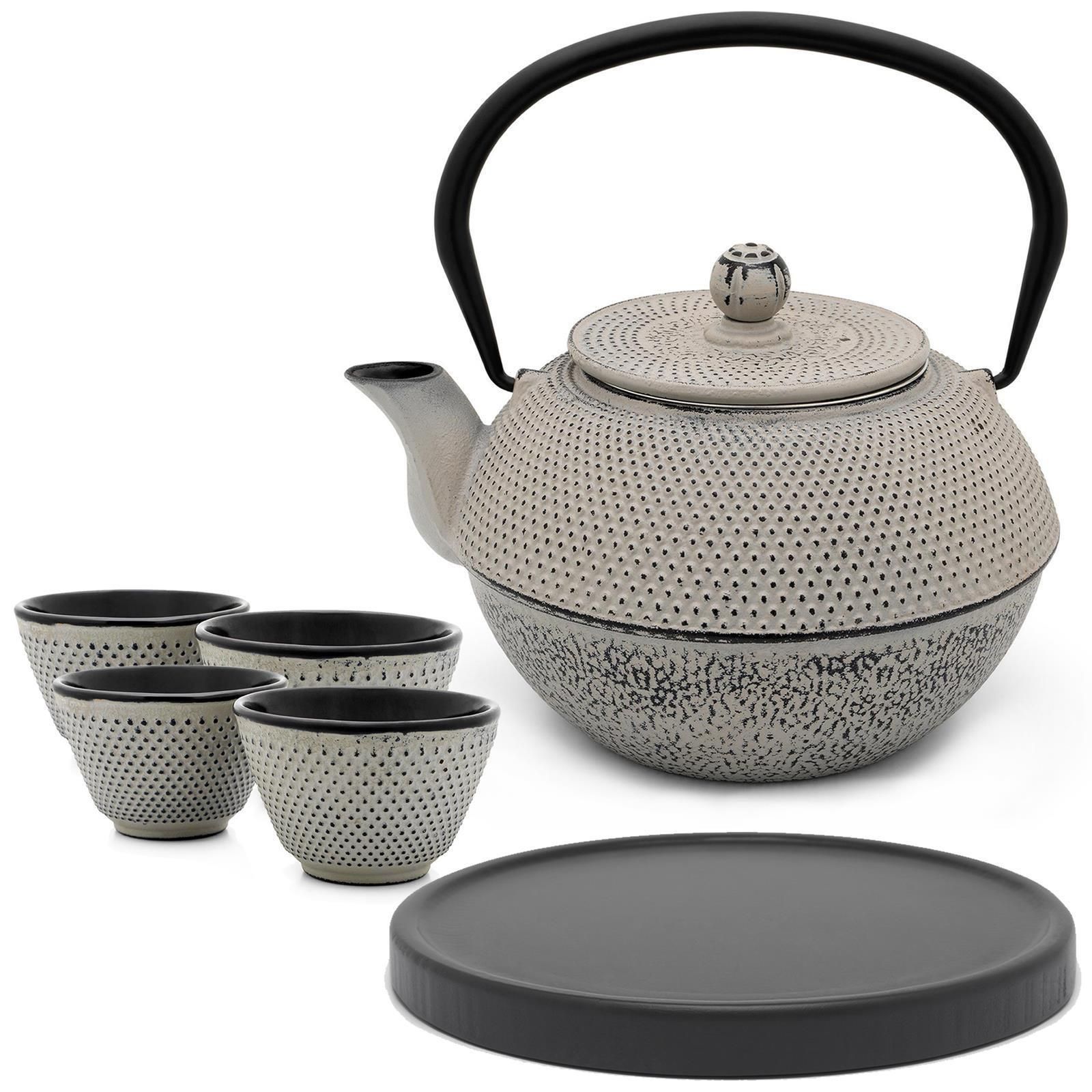 Bredemeijer Bredemeijer Asia Teekanne Gusseisen 1,1 L grau Tee-Set 4 Teebecher mit Holz Untersetz