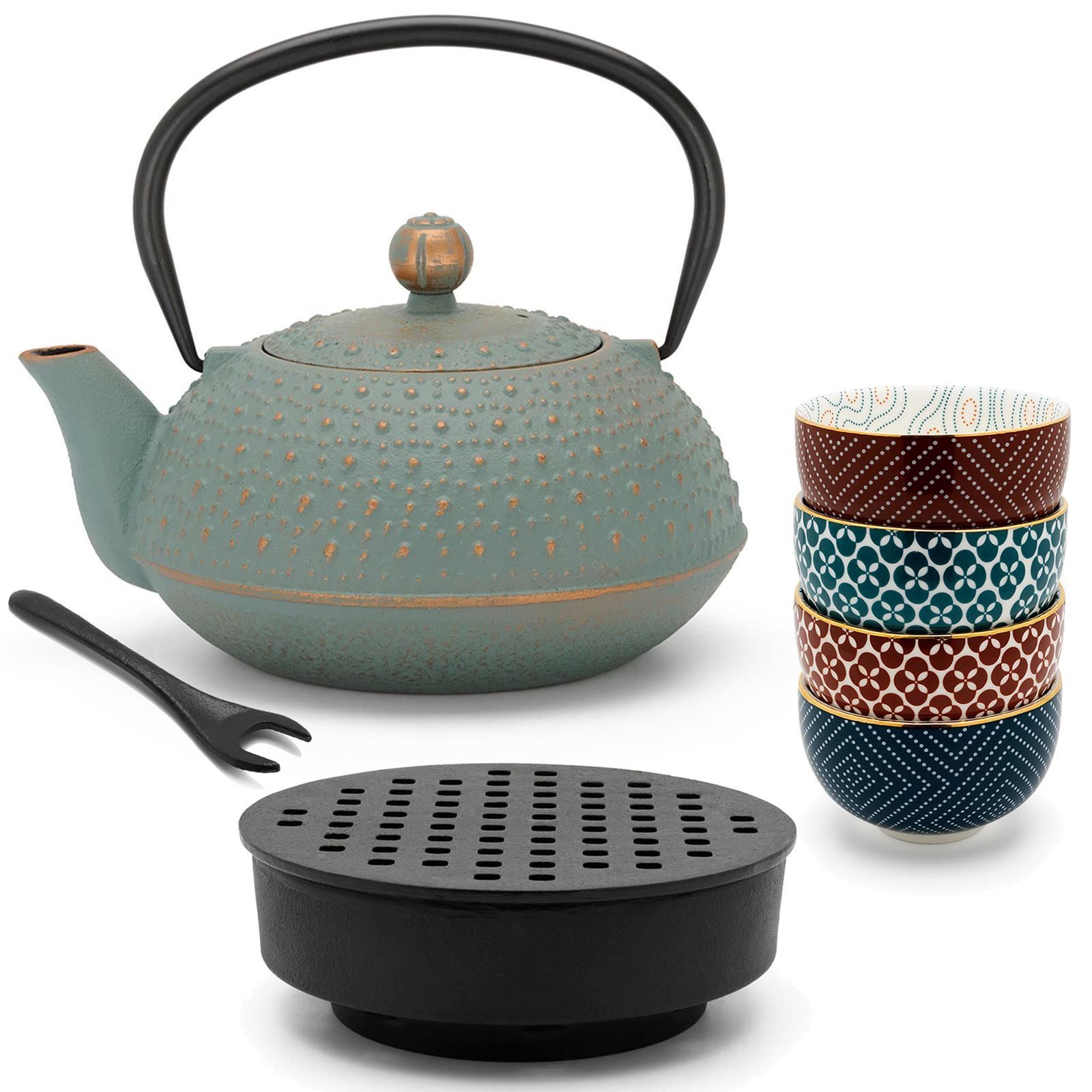 Bredemeijer Bredemeijer Asia Teekanne Set 0,9 L blau Gusseisen Porzellan-Becher Deckelheber & Stö