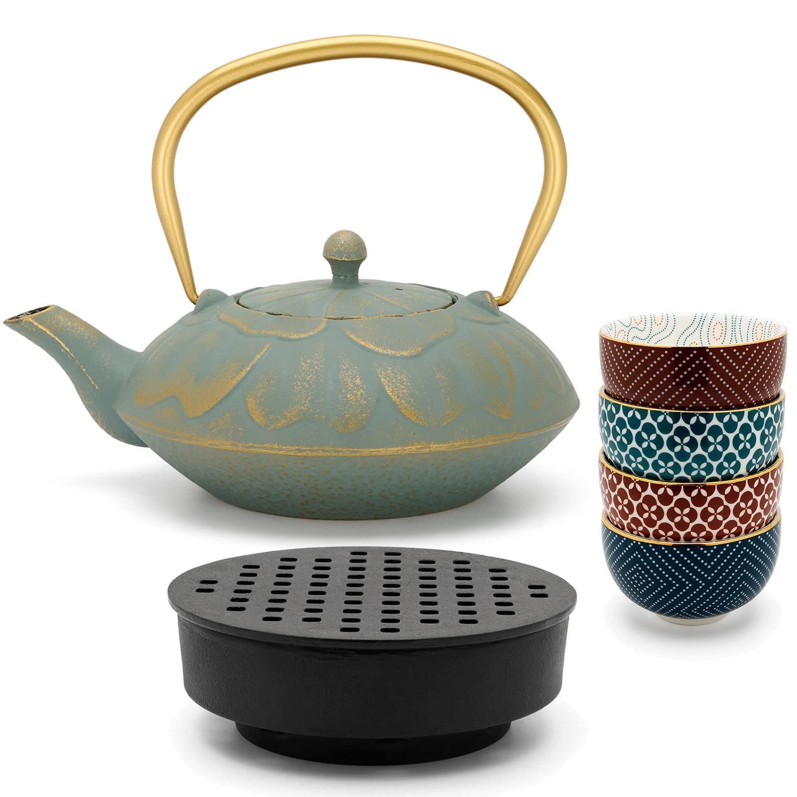 Bredemeijer Bredemeijer Asia Teekanne Set 1,3 L blau Gusseisen mit 4 Porzellan Becher Guss-Stövch