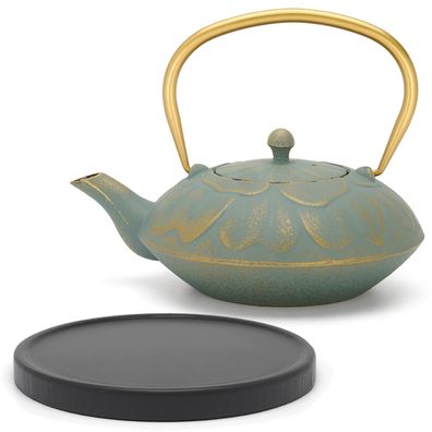 Bredemeijer Asia Teekanne 0,8 L Gusseisen Kanne grün Gusskanne Untersetzer & Deckelhe