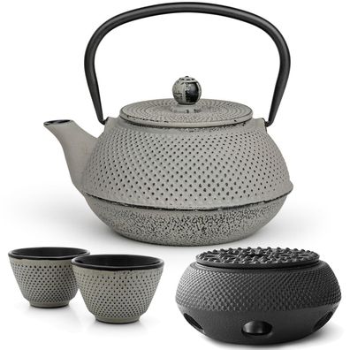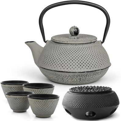 Bredemeijer Gusseisen Teekanne Set 0,8 L grau Asia Teewärmer & 4 Becher