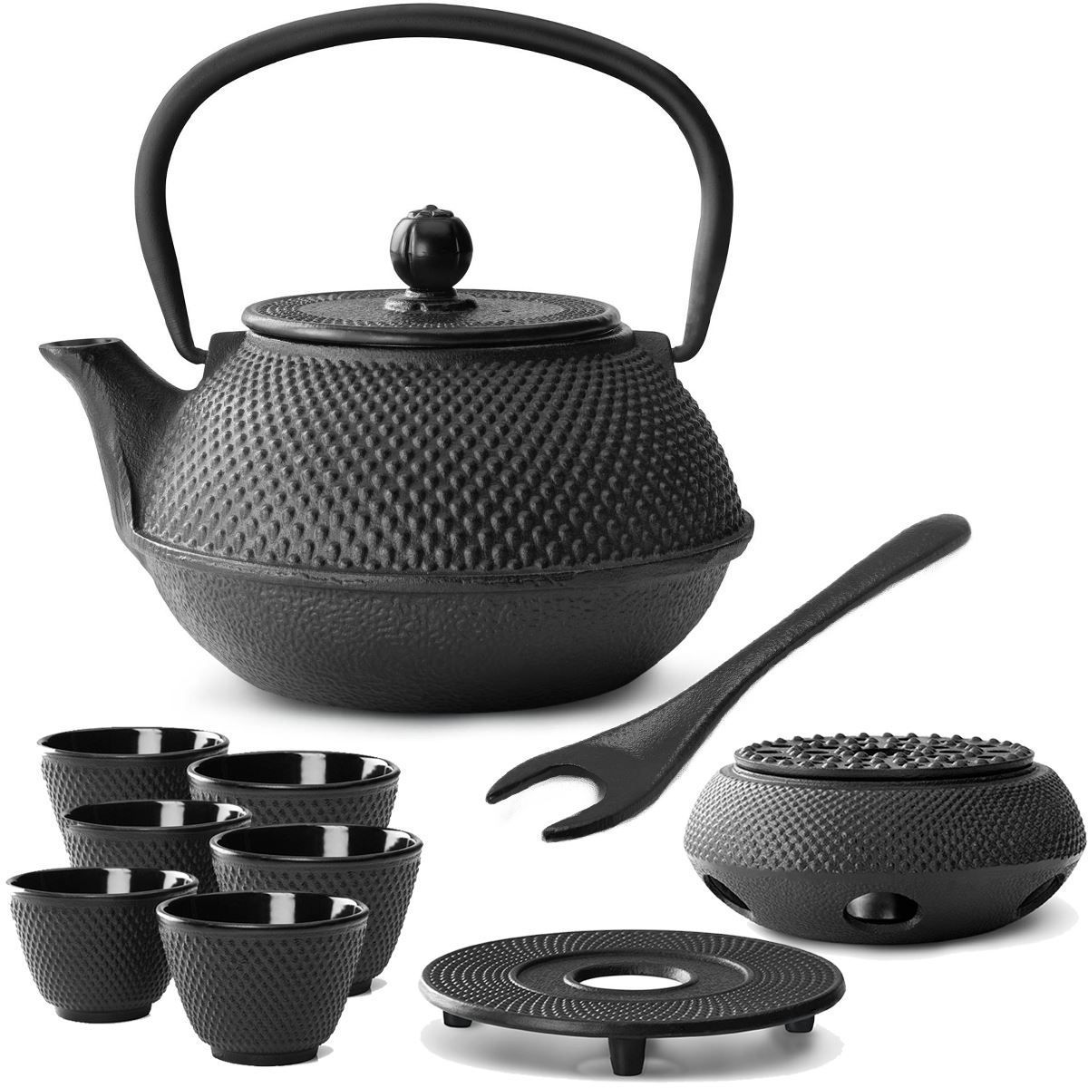 Bredemeijer Bredemeijer Asia Teekannen Set 0,8 L Gusseisen schwarz Stövchen Untersetzer Heber & 6