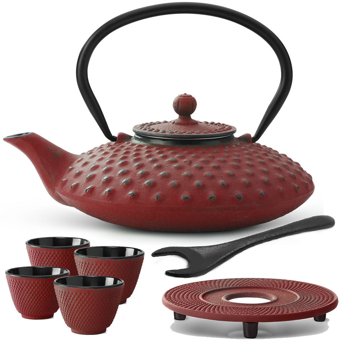 Bredemeijer Bredemeijer Asia Teekannen Set 0,8 L Gusskanne rot Untersetzer Deckelheber & 4 Teebec