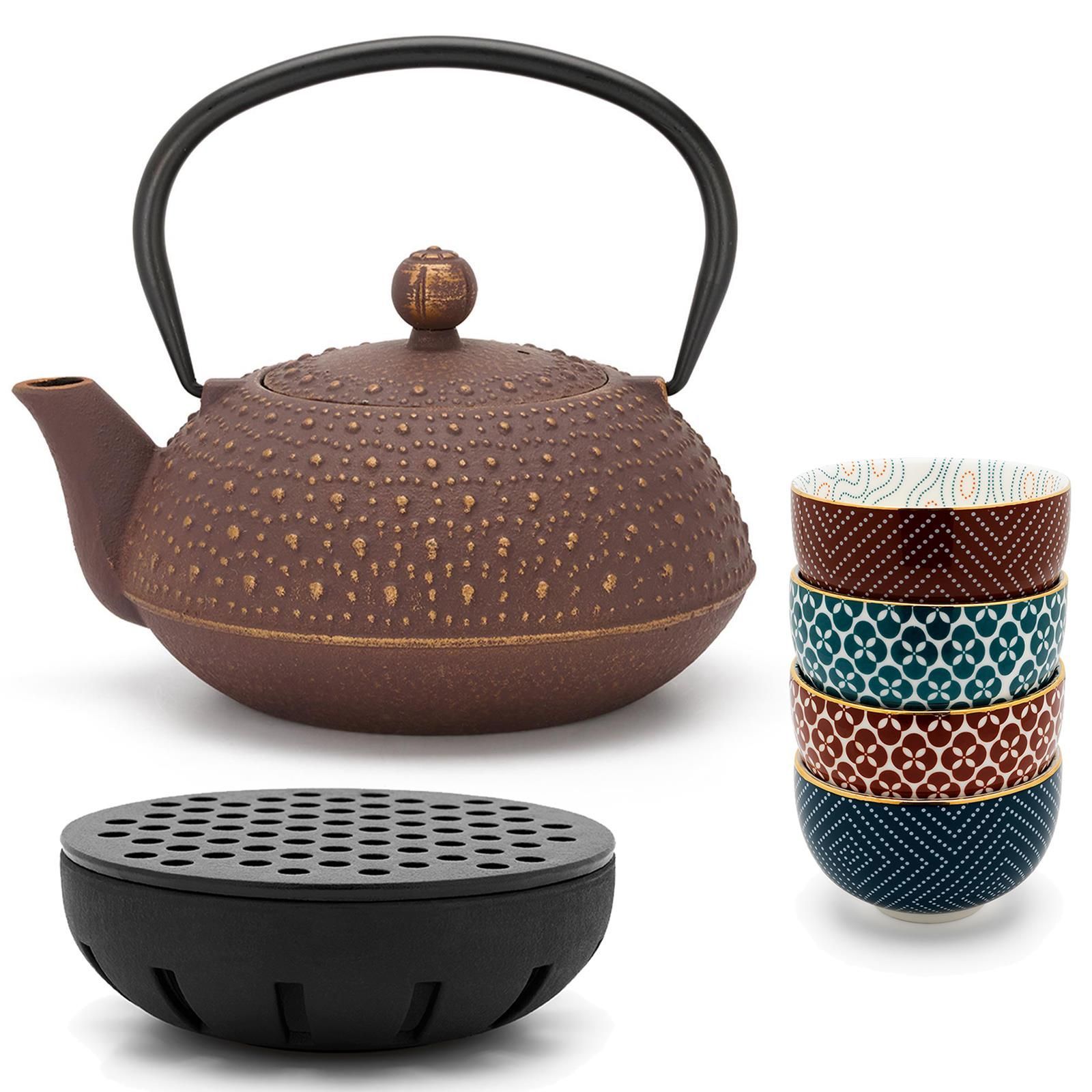 Bredemeijer Bredemeijer Asia Teekannen Set 0,9 L lila Gusseisen & 4 Porzellan Becher Guss-Teewärm