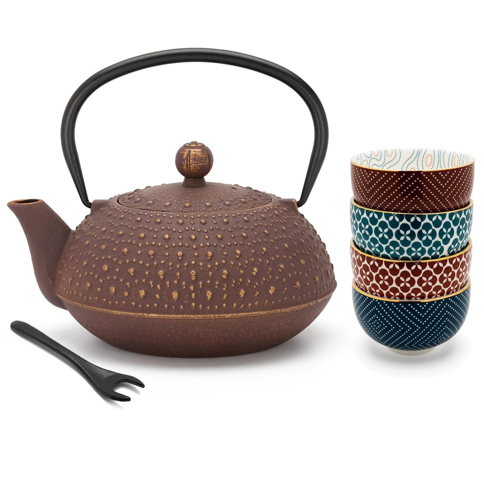 Bredemeijer Bredemeijer Asia Teekannen Set 0,9 L lila Gusseisen mit 4 Porzellan Becher & Deckelhe