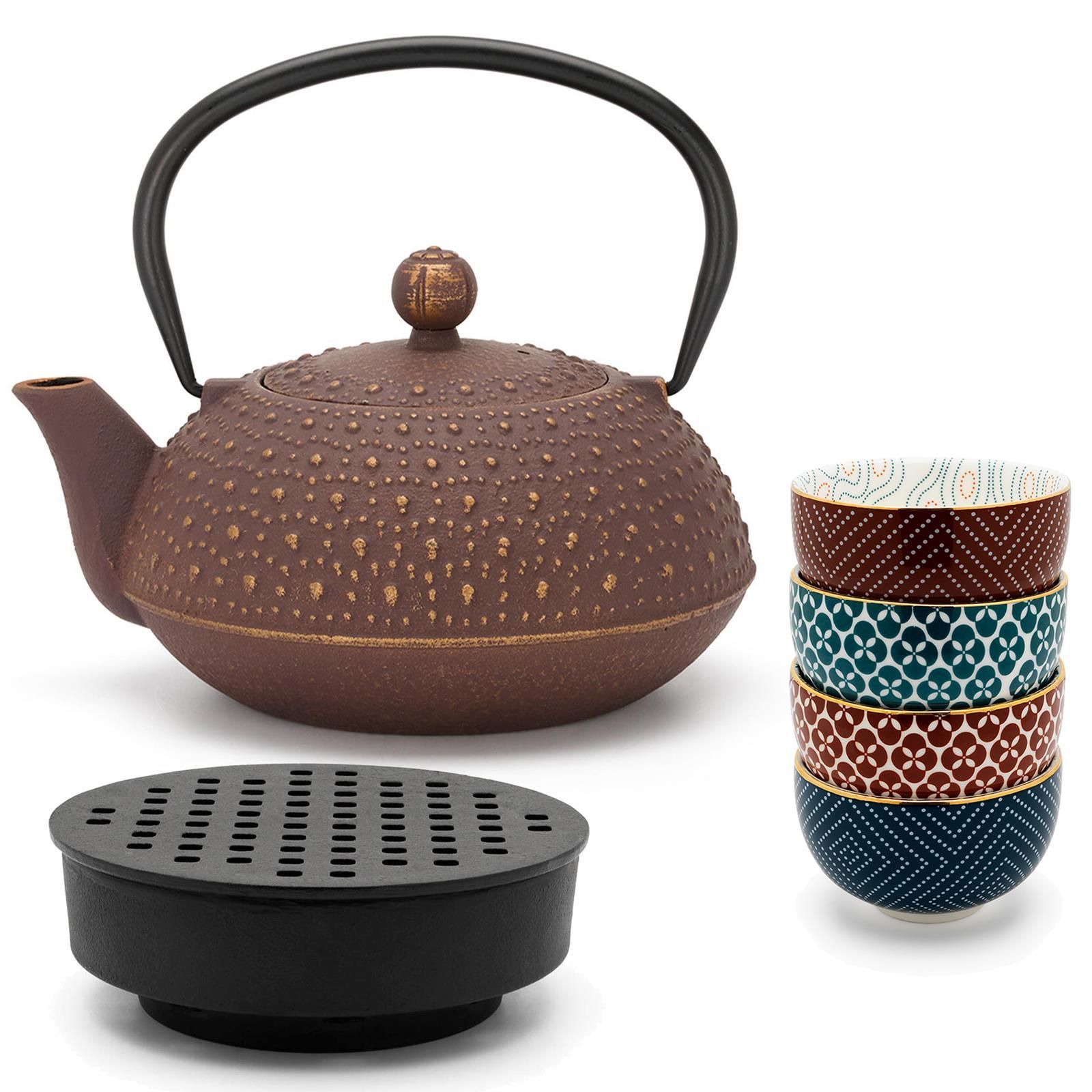 Bredemeijer Bredemeijer Asia Teekannen Set 0,9 L lila Gusseisen mit 4 Porzellan Becher Guss-Stövc