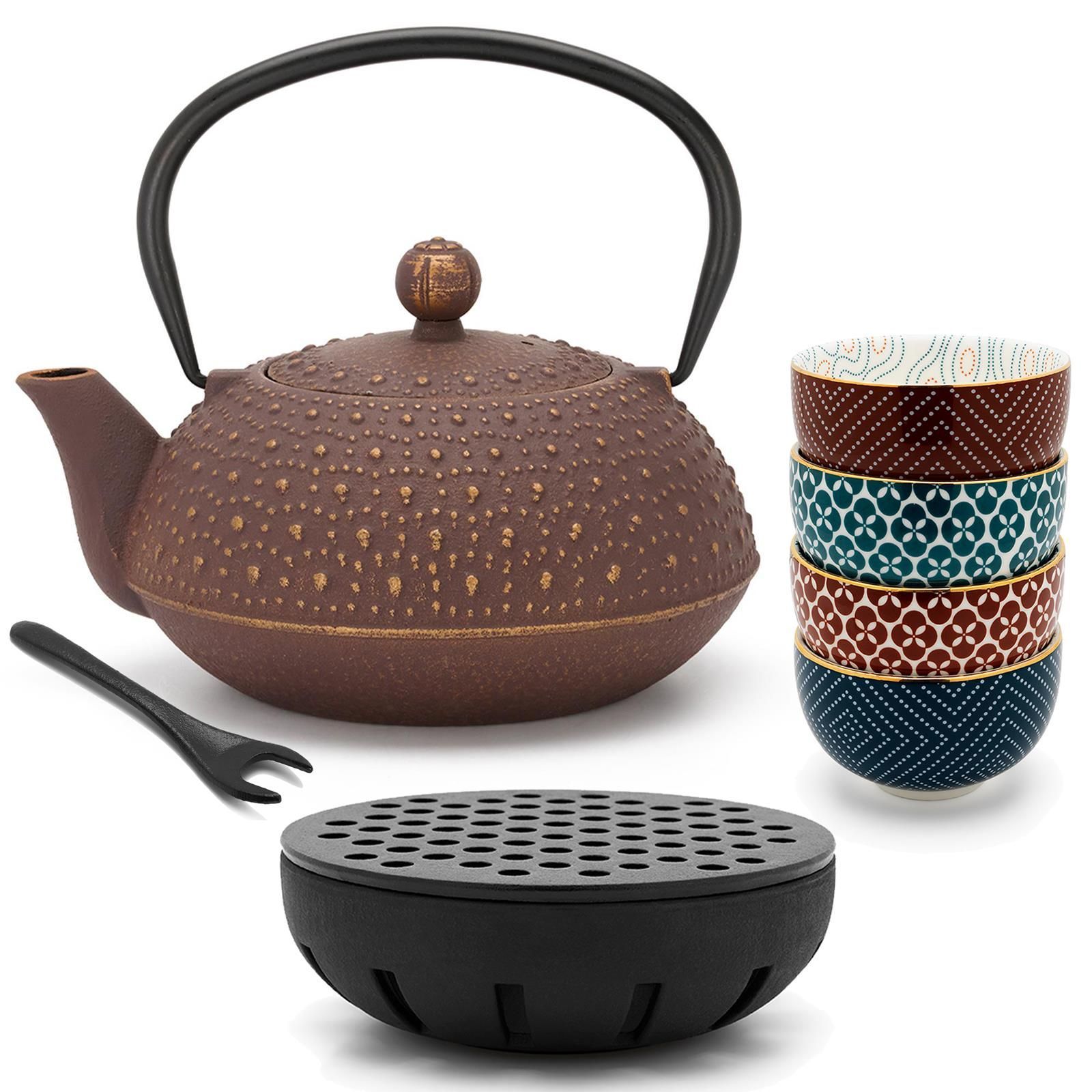 Bredemeijer Bredemeijer Asia Teekannen Set 0,9 L lila Gusseisen Teewärmer Porzellan-Becher & Deck