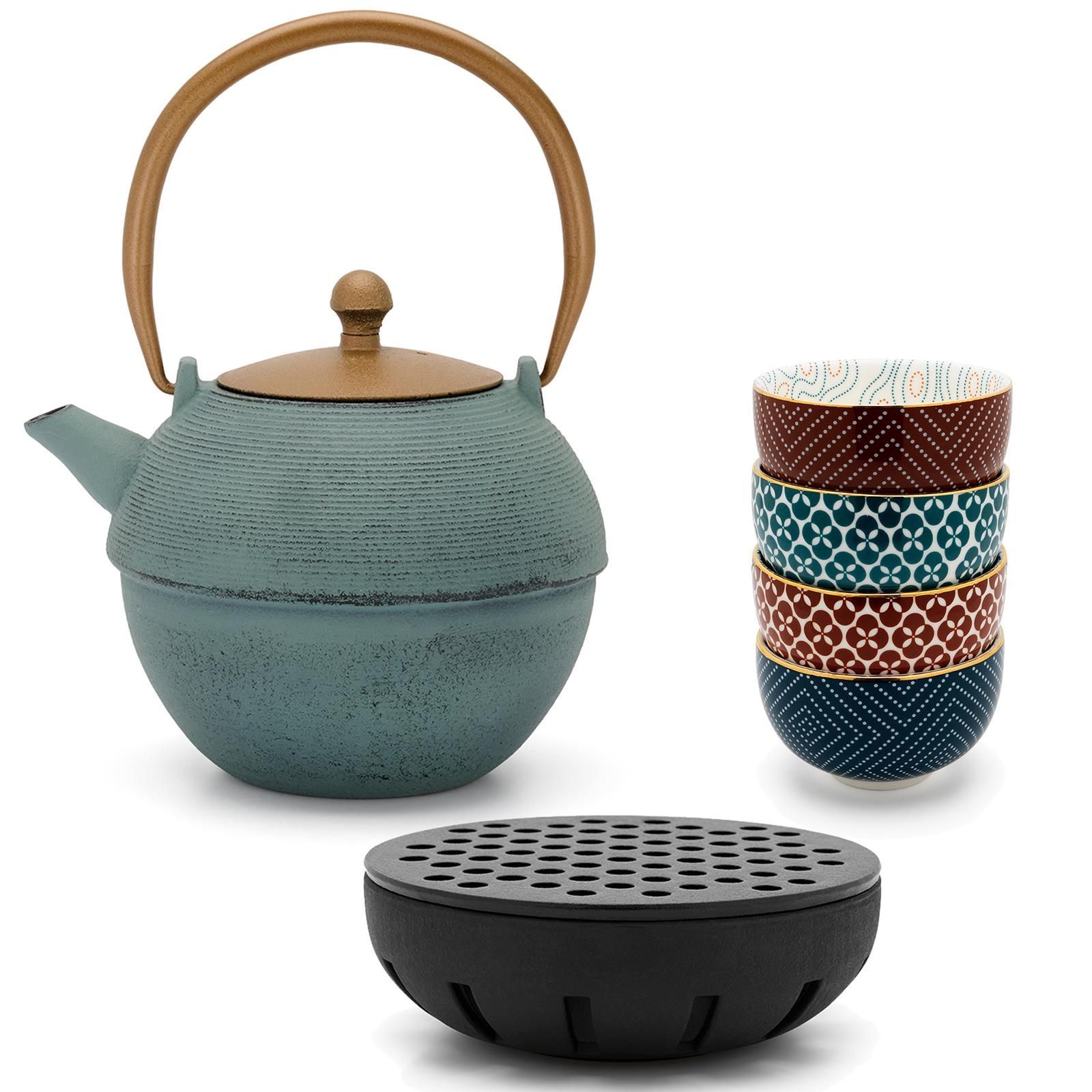 Bredemeijer Bredemeijer Asia Teekannen Set 1,2 L blau Gusseisen & 4 Porzellan Becher Guss-Teewärm