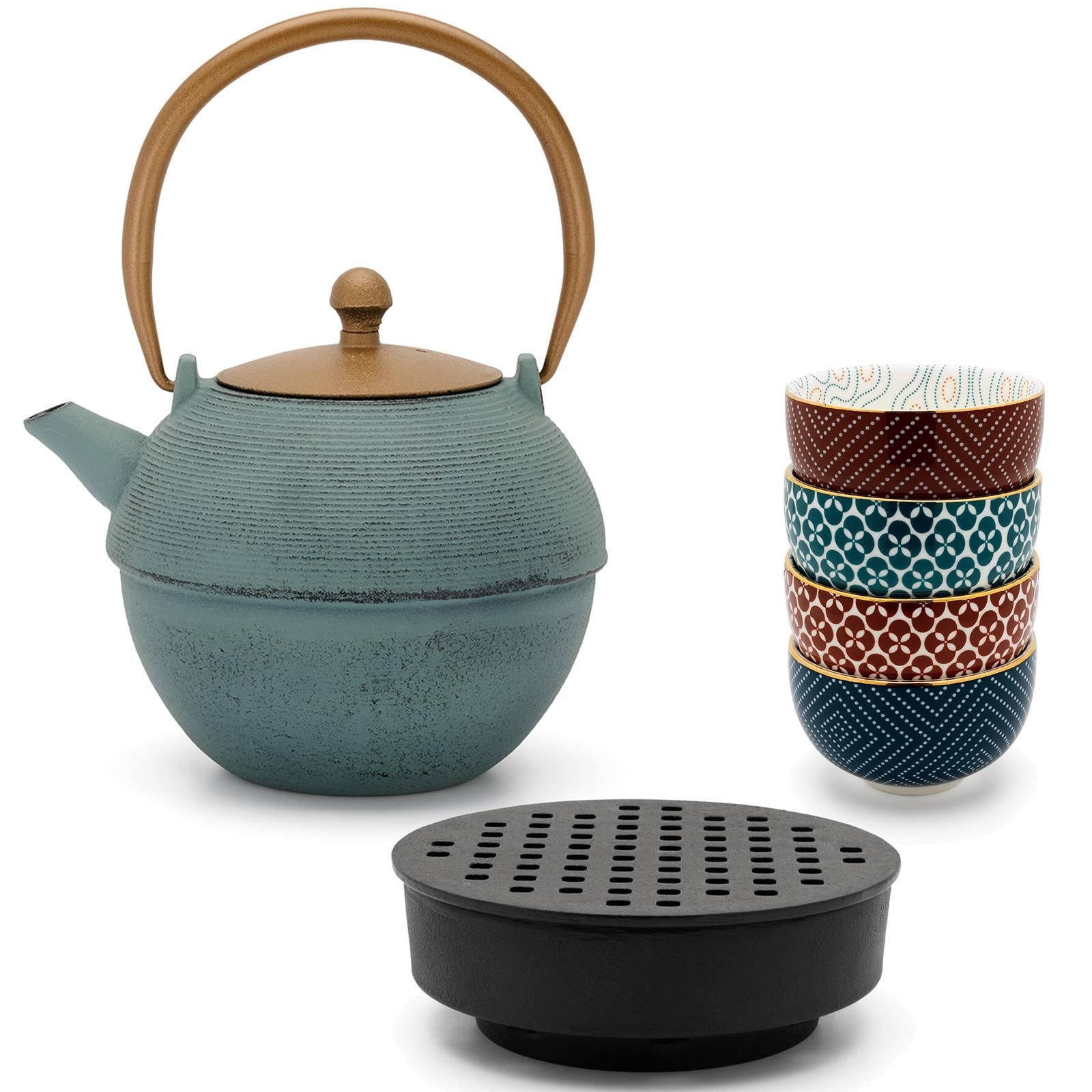 Bredemeijer Bredemeijer Asia Teekannen Set 1,2 L blau Gusseisen mit 4 Porzellan Becher Guss-Stövc