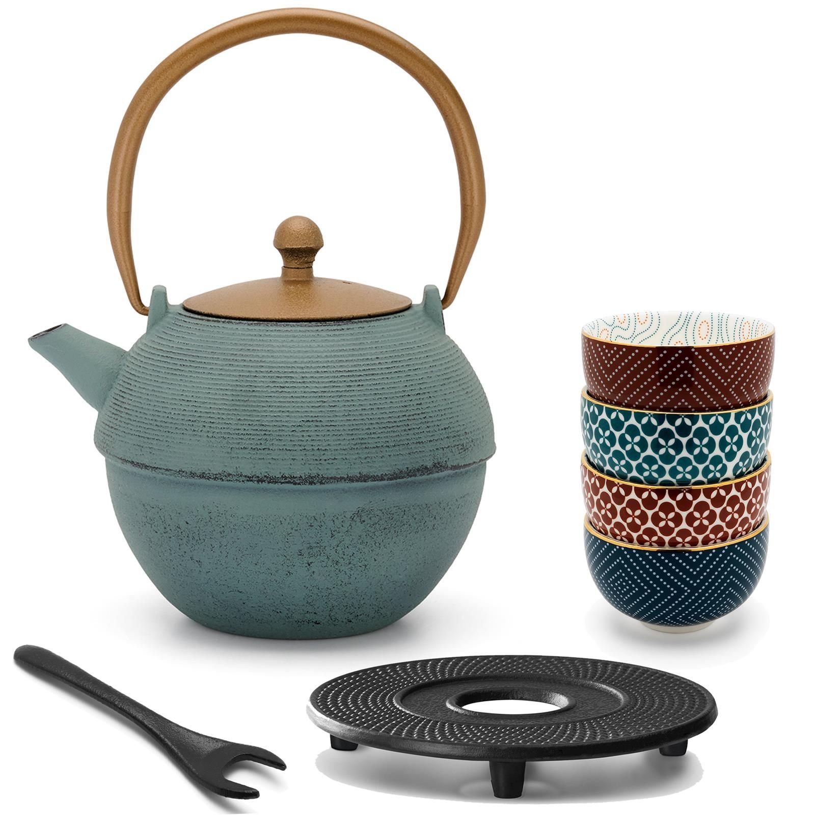 Bredemeijer Bredemeijer Asia Teekannen Set 1,2 L blau Gusseisen Porzellan-Becher Untersatz & Deck