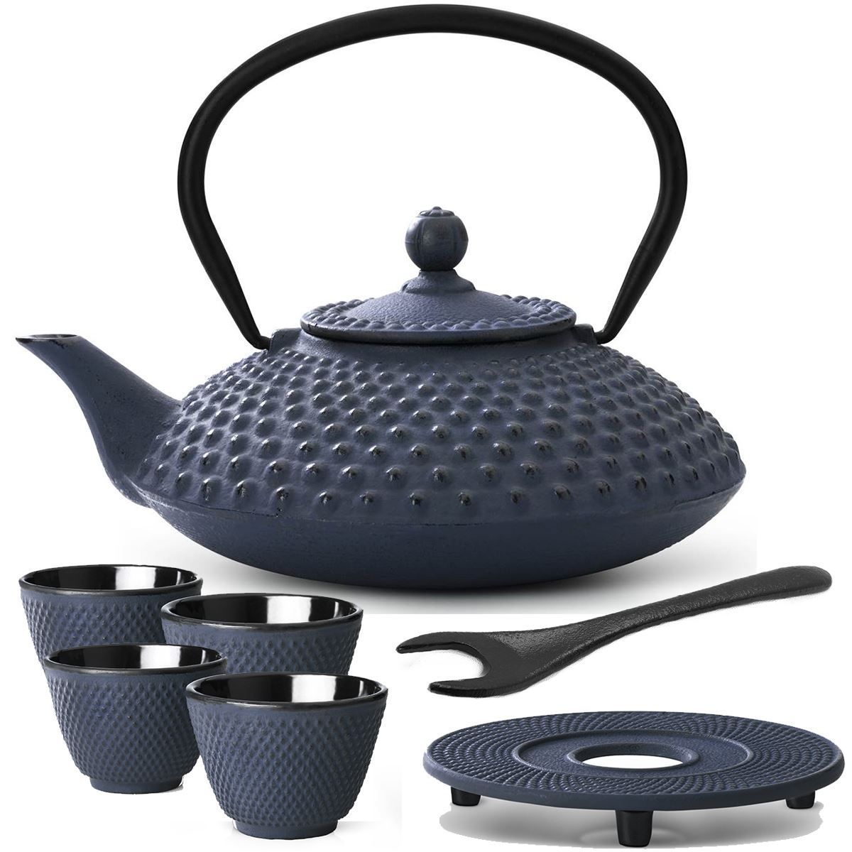 Bredemeijer Bredemeijer Asia Teekannen Set 1,25 L Gusskanne blau Untersetzer Deckelheber 4 Teebec