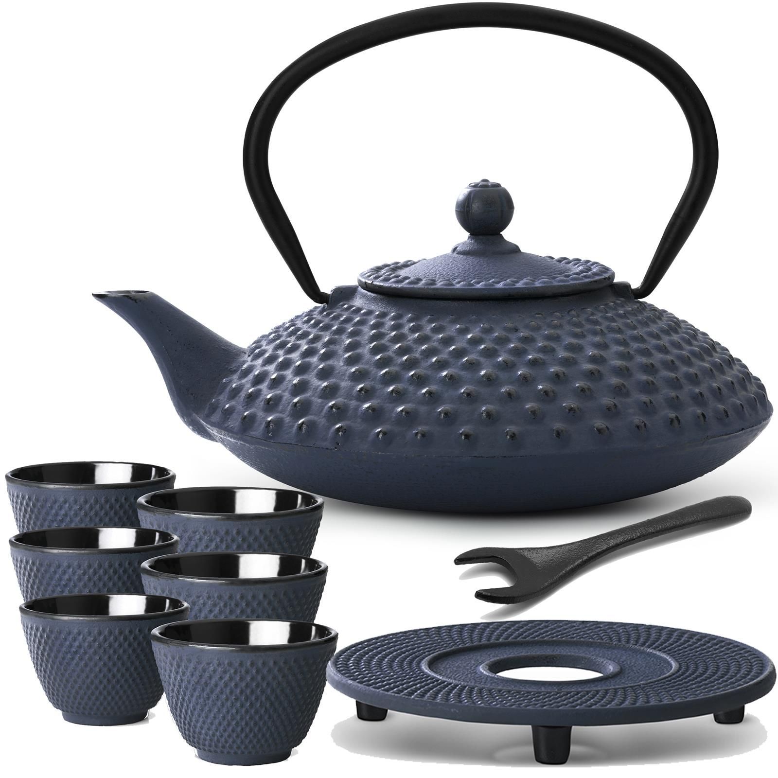 Bredemeijer Bredemeijer Asia Teekannen Set 1,25 L Gusskanne blau Untersetzer Deckelheber 6 Teebec
