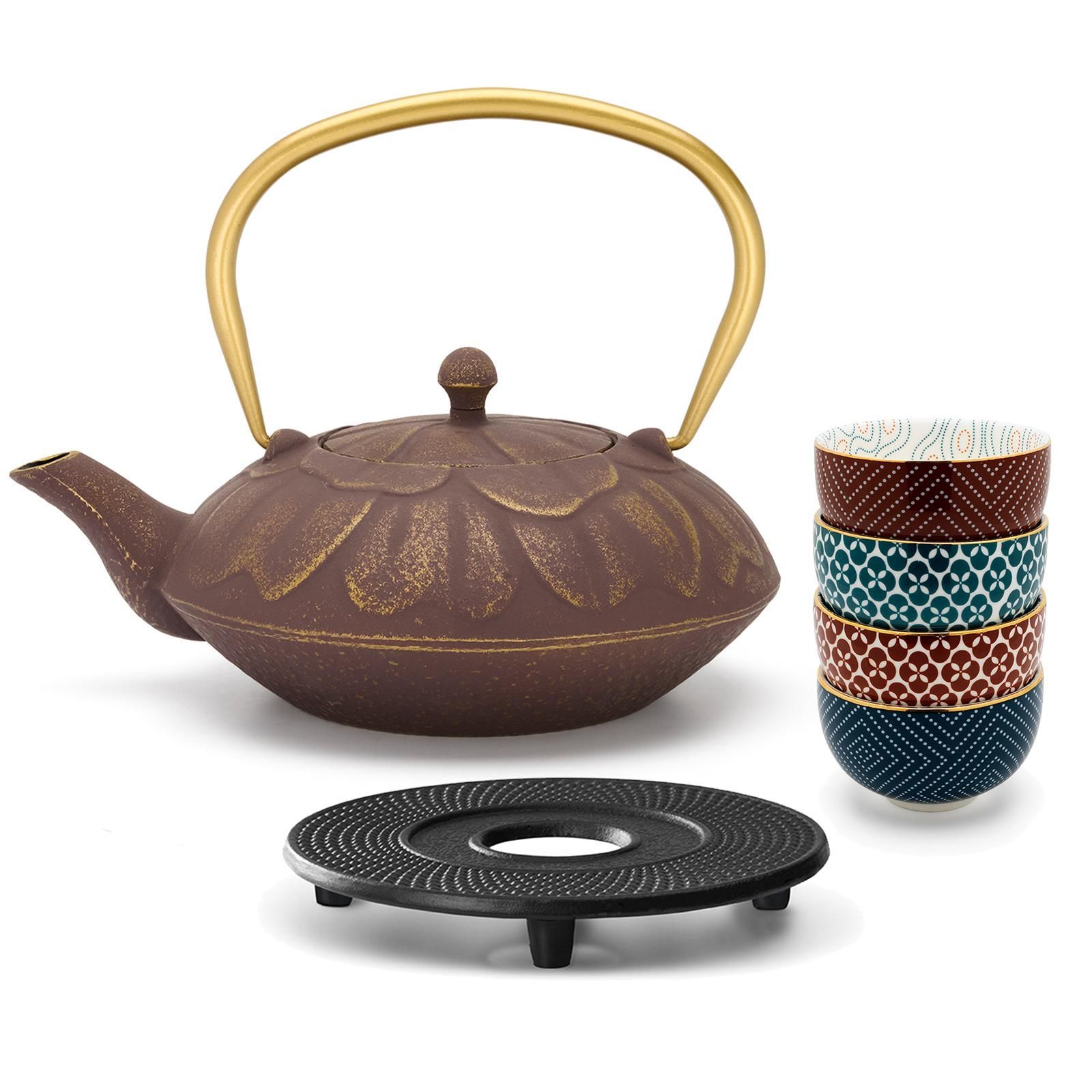 Bredemeijer Bredemeijer Asia Teekannen Set 1,3 L lila Gusseisen mit 4 Porzellan Becher & Unterset