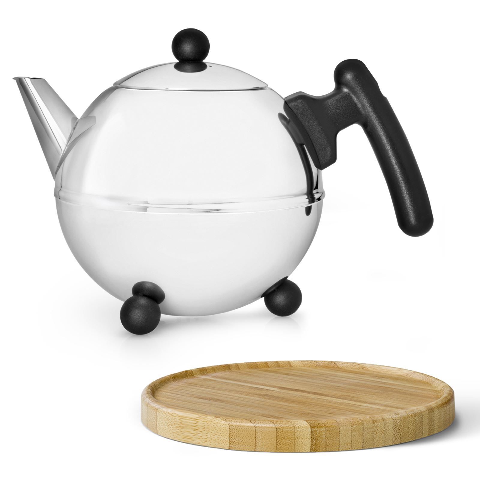 Bredemeijer Bredemeijer Edelstahl Kugelkanne 0,75 L Teekanne doppelwandig mit Holzuntersetzer bra