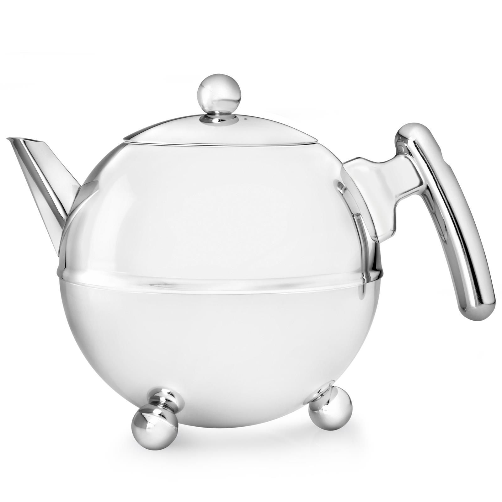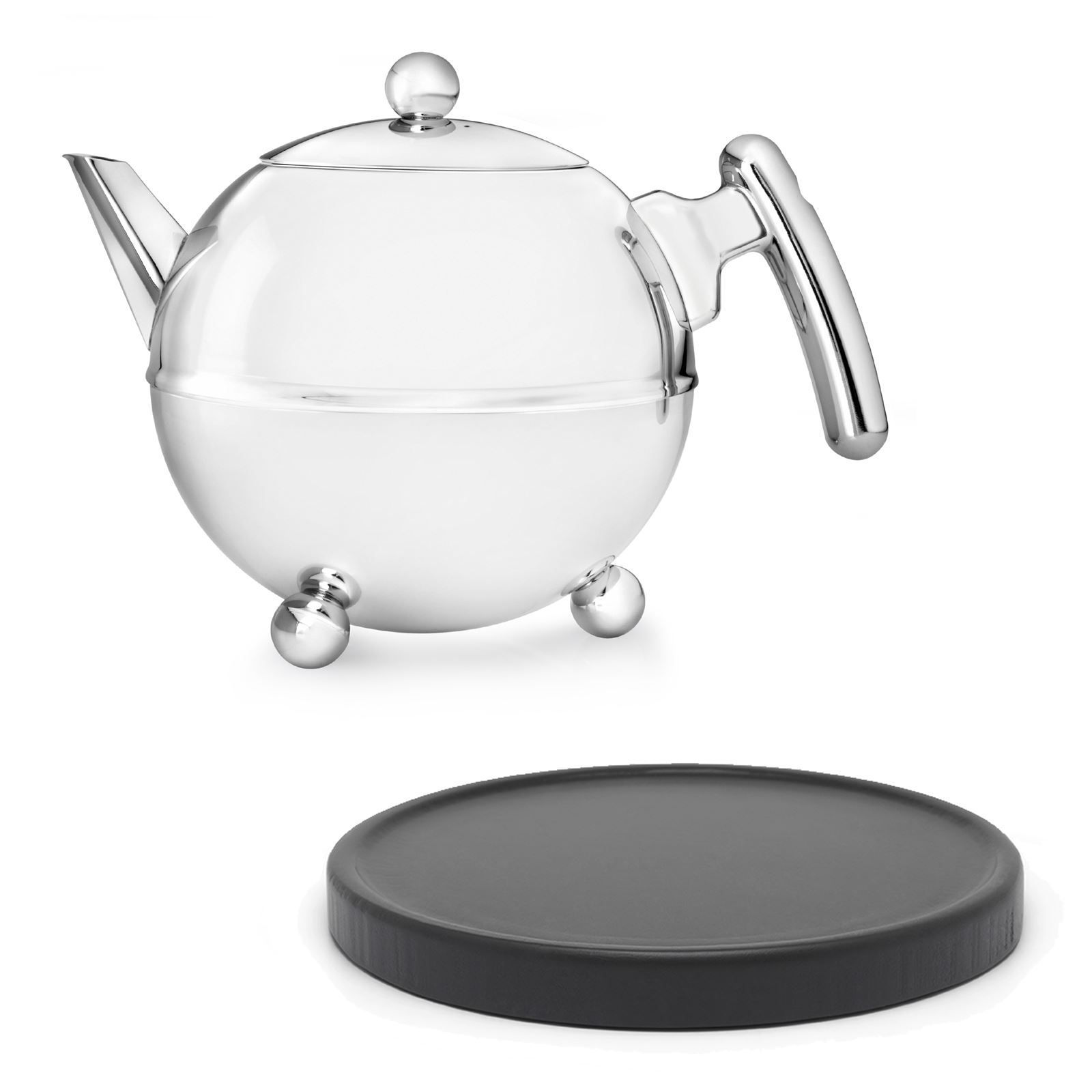 Bredemeijer Bredemeijer Edelstahl Teekanne 0,75 L Kugelkanne doppelwandig & Holzuntersetzer schwa