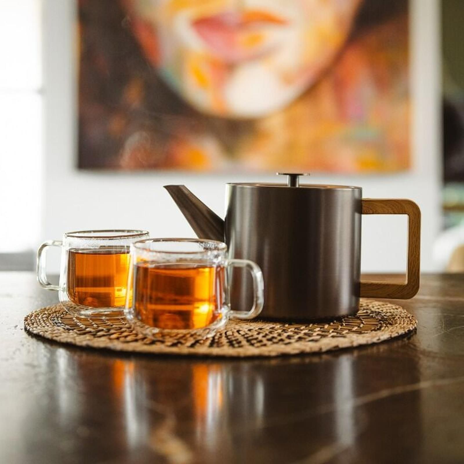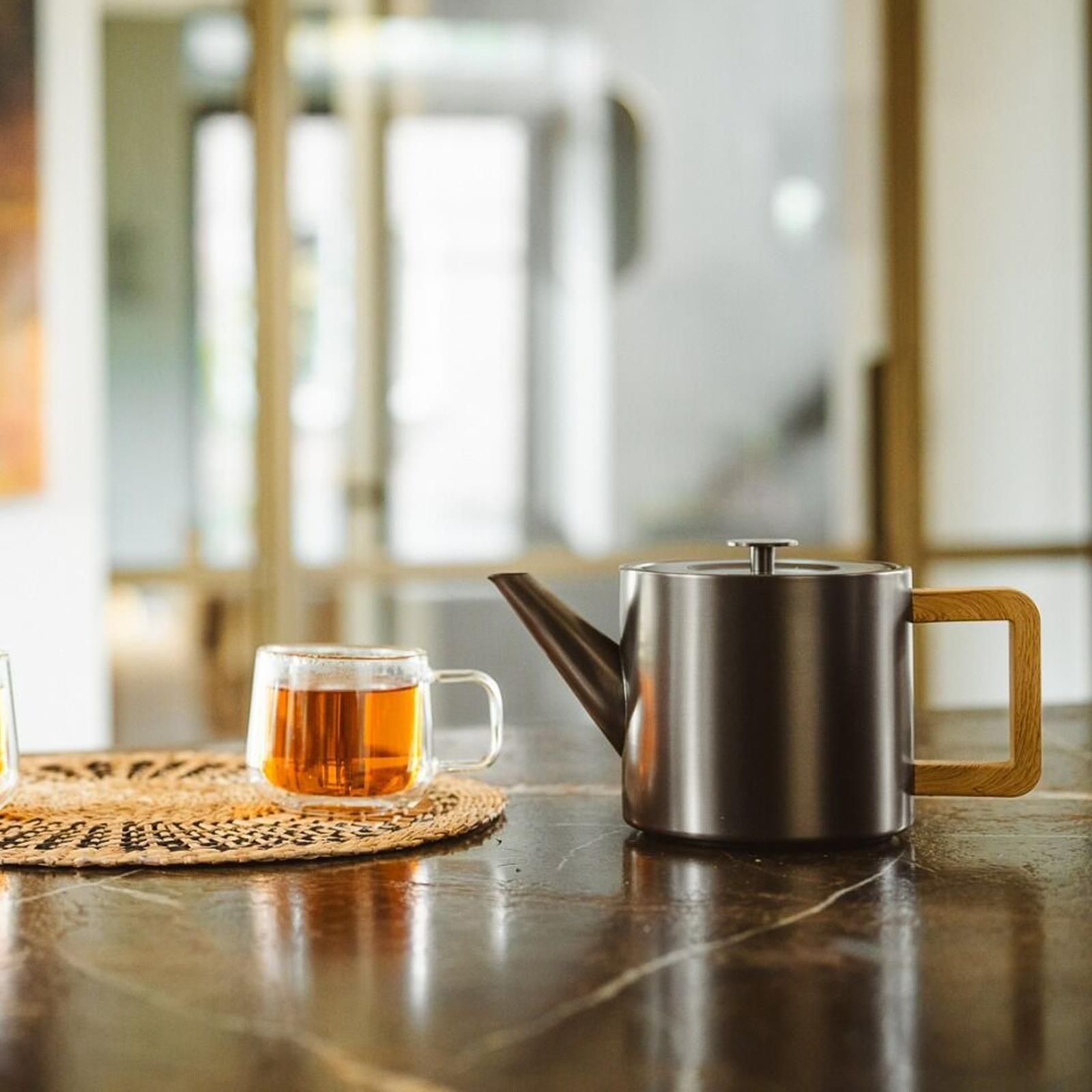 Bredemeijer Bredemeijer Edelstahl Teekanne 1,1 L metallicgrau doppelwandig & Untersetzer sw