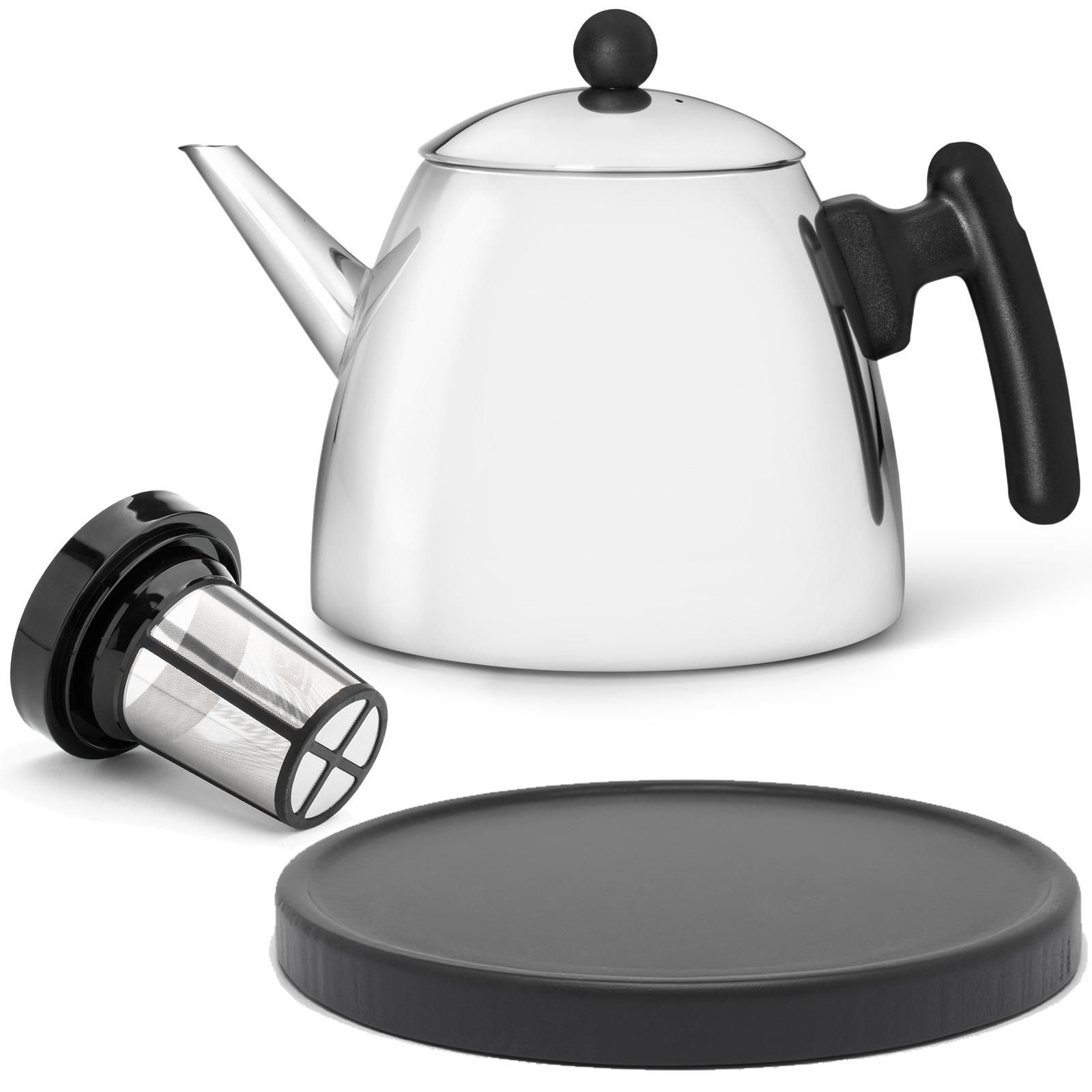 Bredemeijer Bredemeijer Edelstahl Teekanne 1,2 L konisch Kanne Teefilter & schwarzer Holzunterset