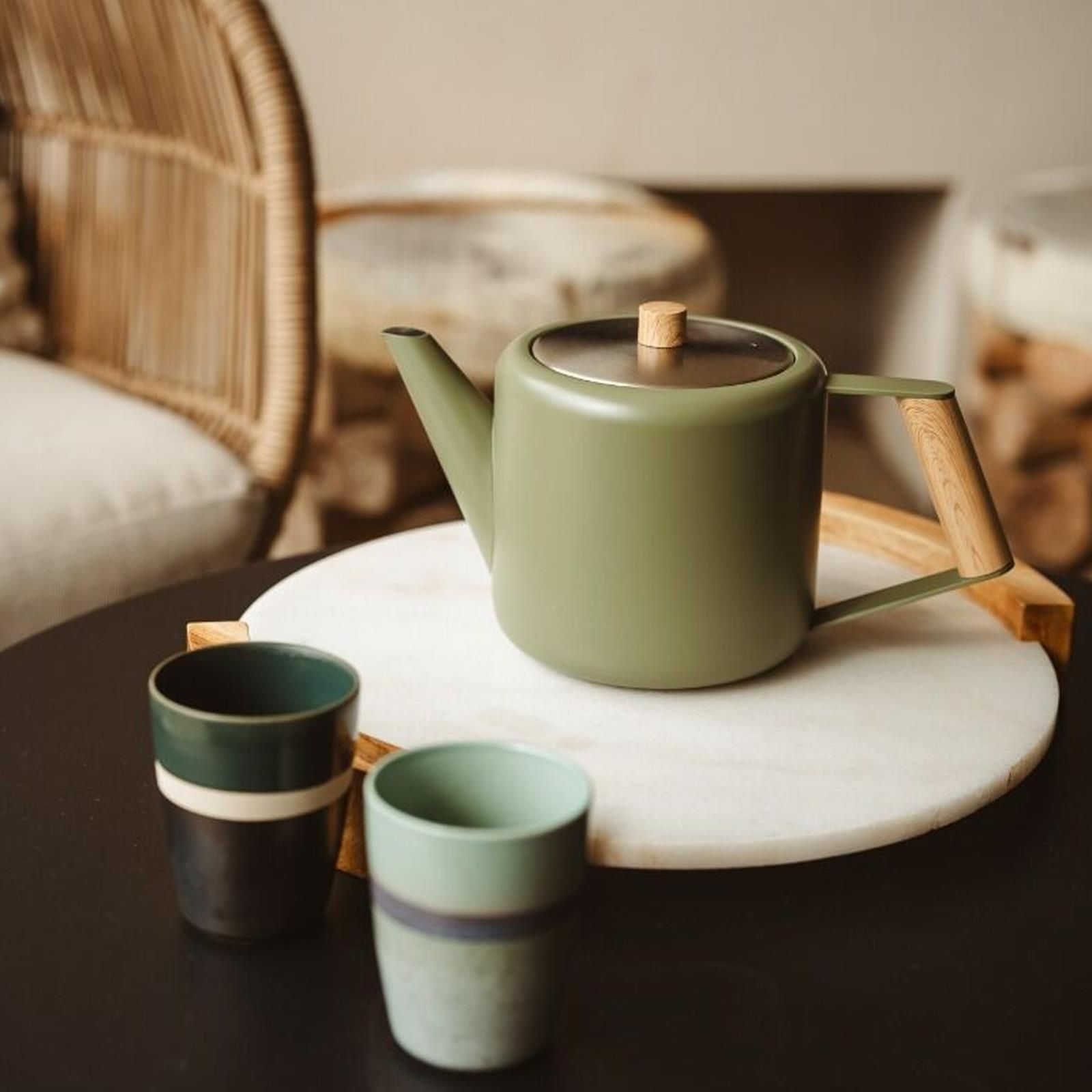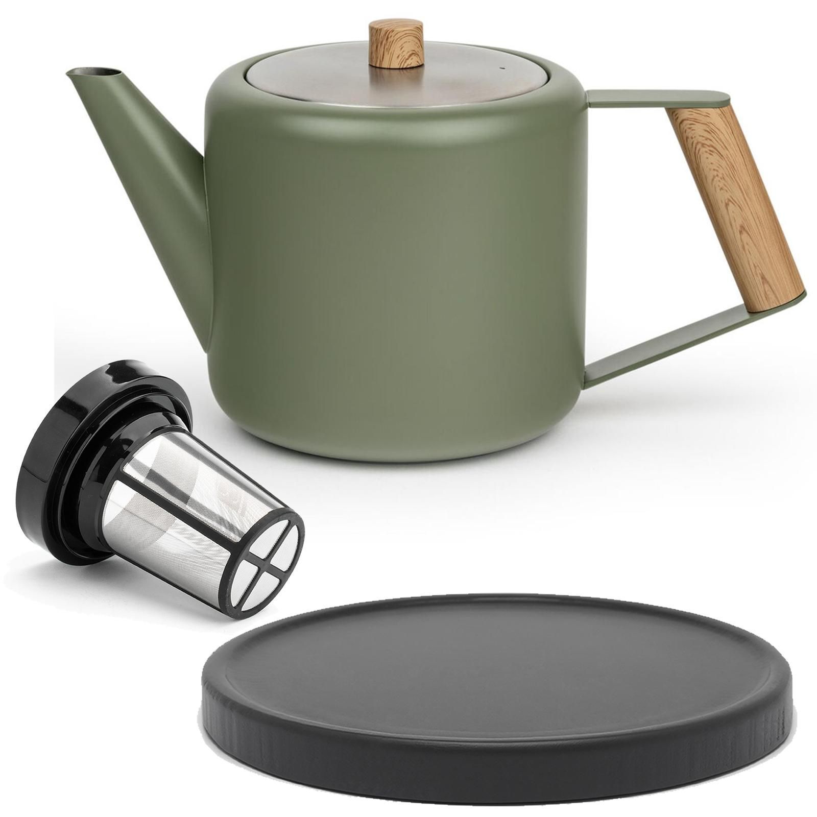 Bredemeijer Bredemeijer Edelstahl Teekanne Set 1,1 L grün doppelwandig Untersetzer sw & Sieb