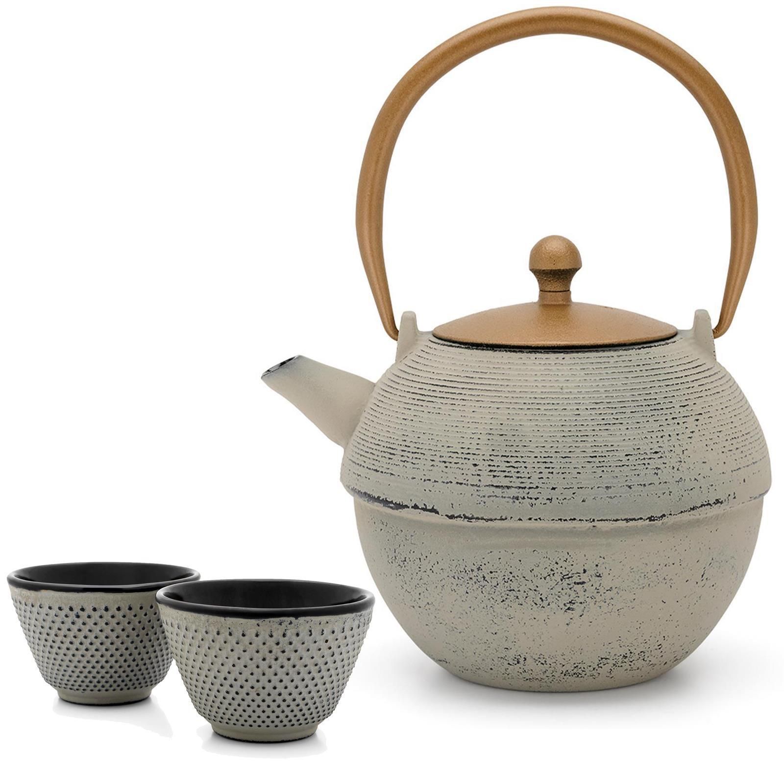Bredemeijer Bredemeijer Graue große Asia Teekanne Gusseisen 1,2 L mit Tee-Sieb Tee Set & 2 Teebec