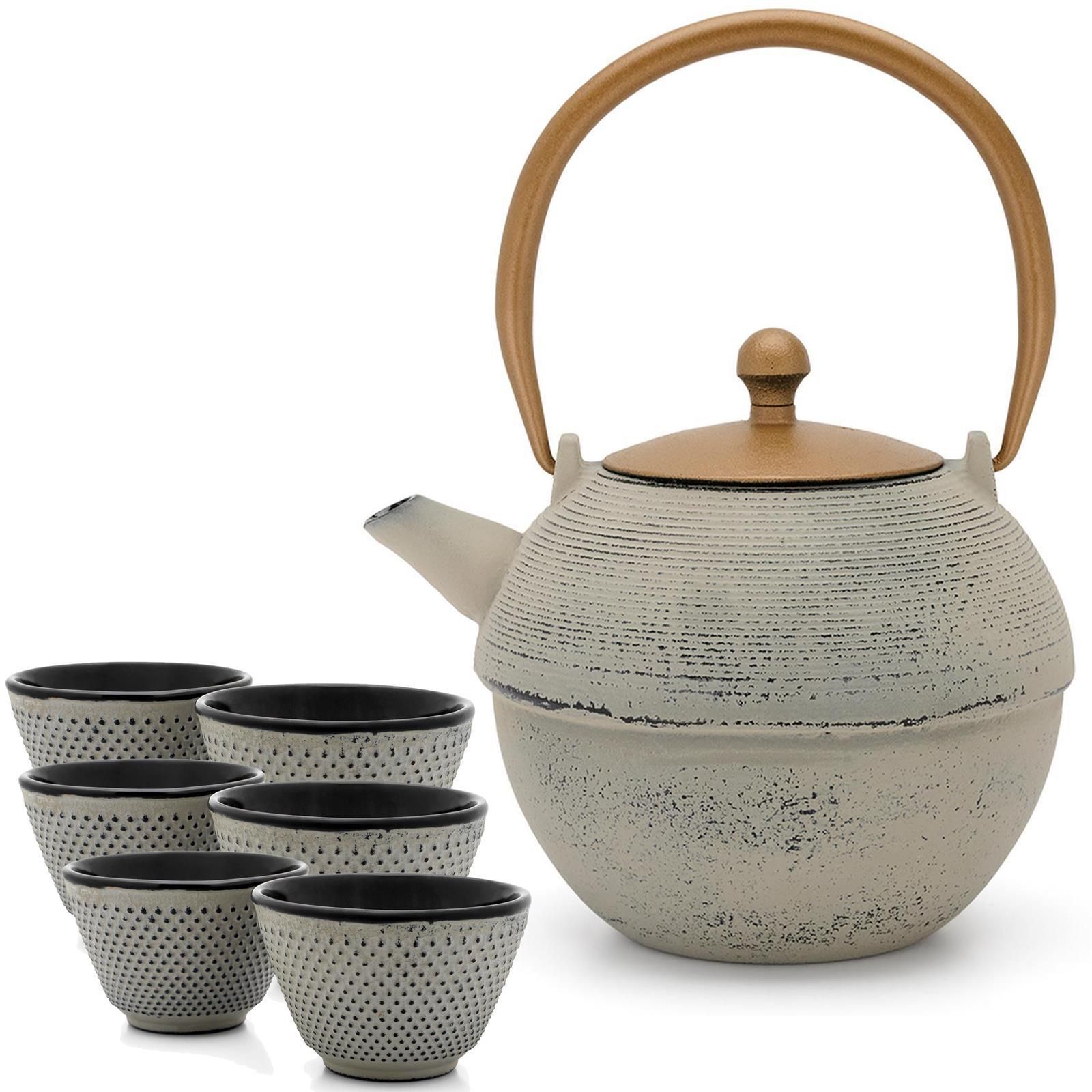 Bredemeijer Bredemeijer Graue große Asia Teekanne Gusseisen 1,2 L mit Tee-Sieb Tee Set & 6 Teebec