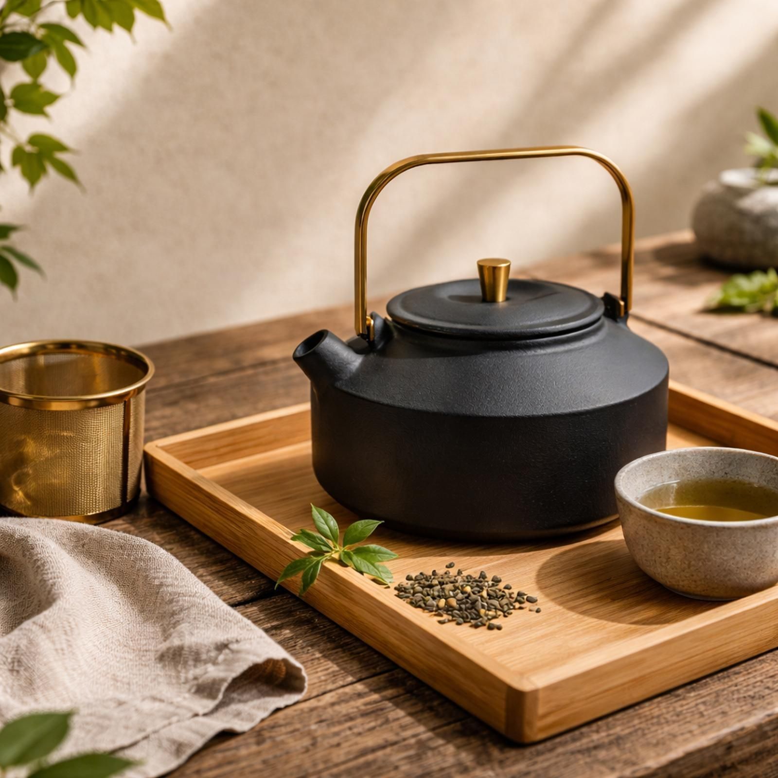 Bredemeijer Bredemeijer Guss Teekanne 1,0 Liter schwarz Kanne Untersetzer schwarz Teefilter