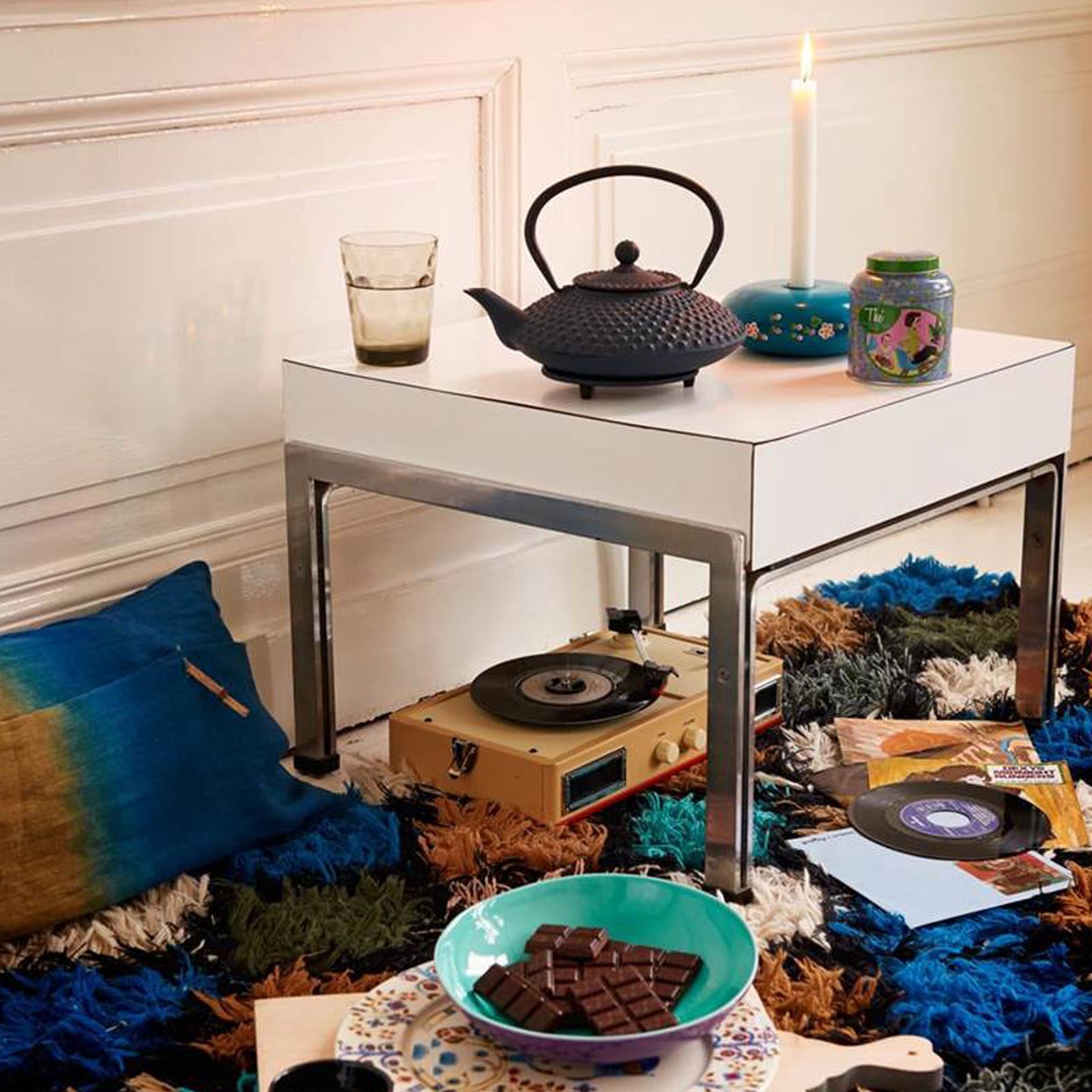 Bredemeijer Bredemeijer Gusseisen Teekanne 1,25 L - blaue Noppenstruktur & Edelstahlfilter