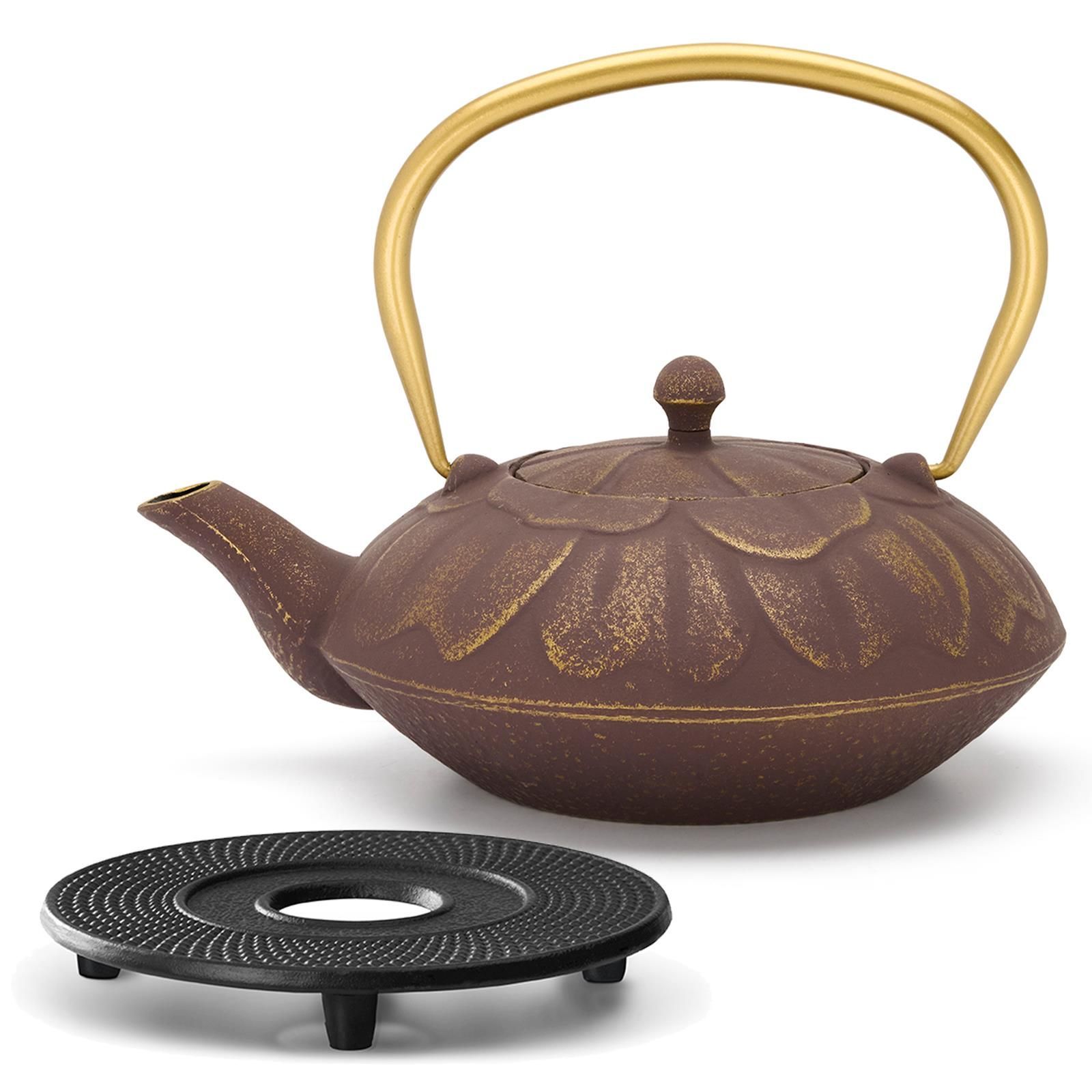 Bredemeijer Bredemeijer Gusseisen Teekanne 1,3 L flache Asia Gusskanne lila Teeset Kanne Gussunte