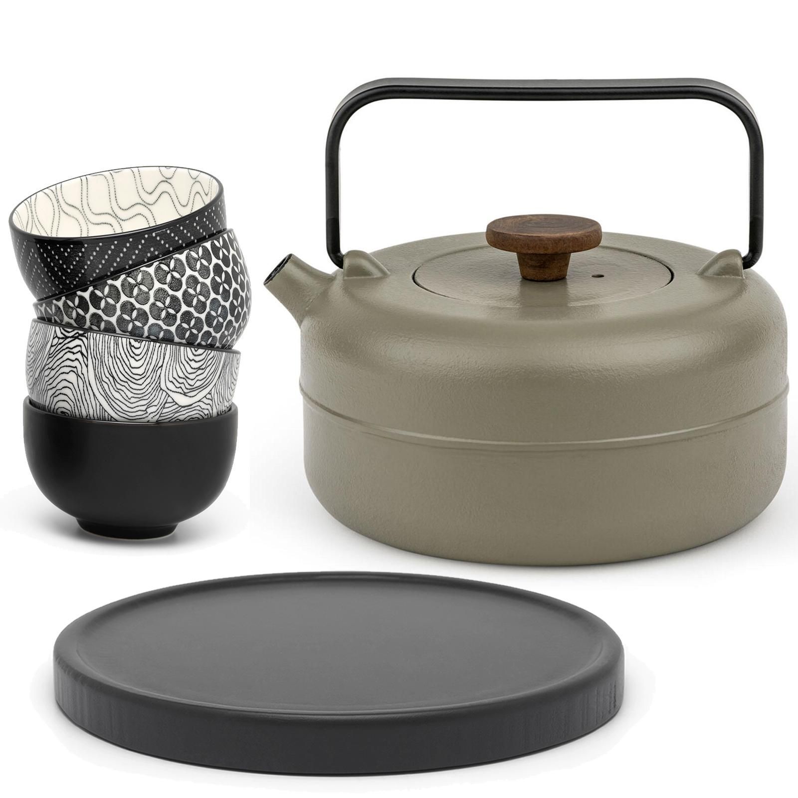 Bredemeijer Bredemeijer Gusskanne 0,75 Liter Khaki-Grün Teekanne Untersetzer 4 Becher Filter