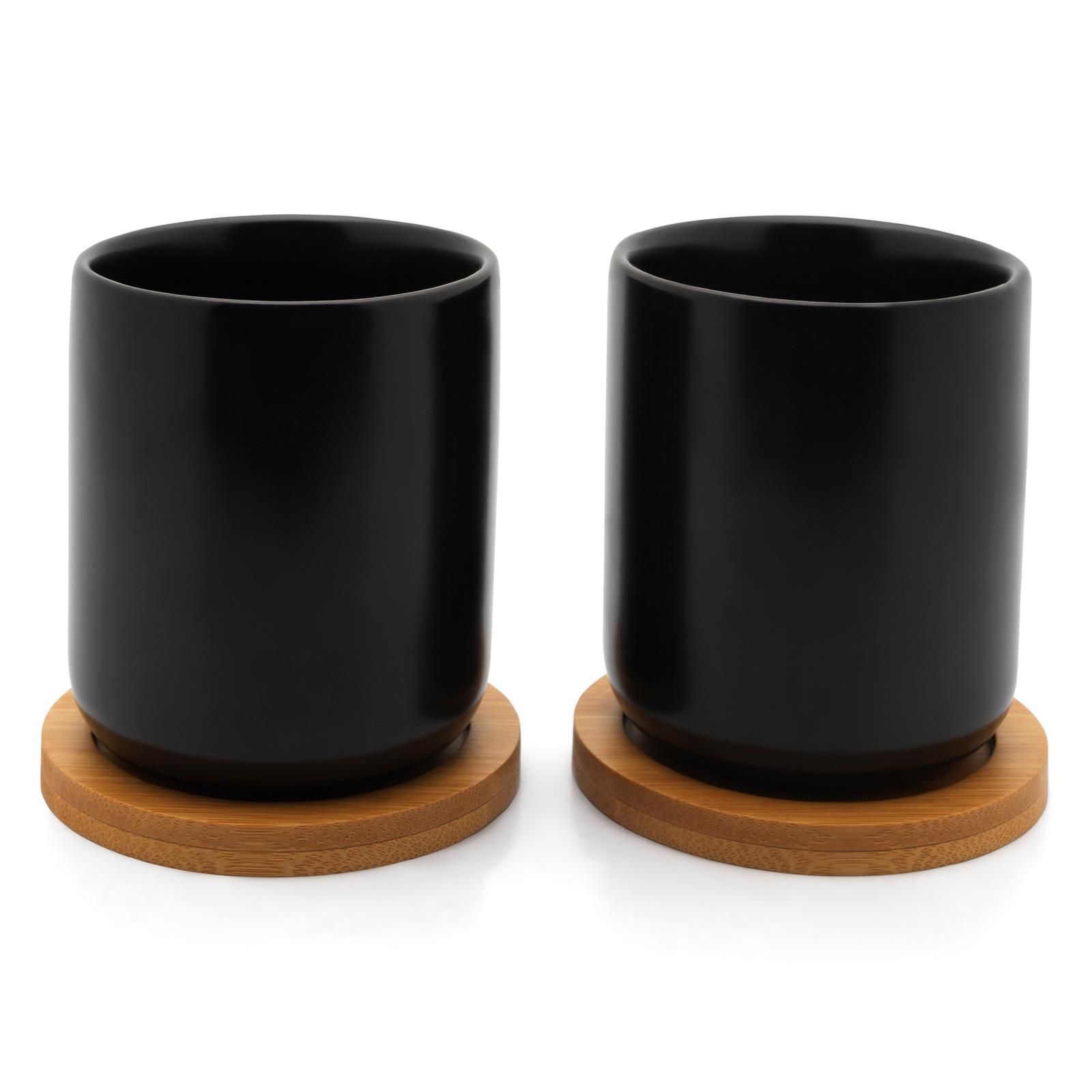Bredemeijer Bredemeijer Keramik Teebecher Set 2tlg, Teetassen schwarz Steingut Becher & Holz Unte