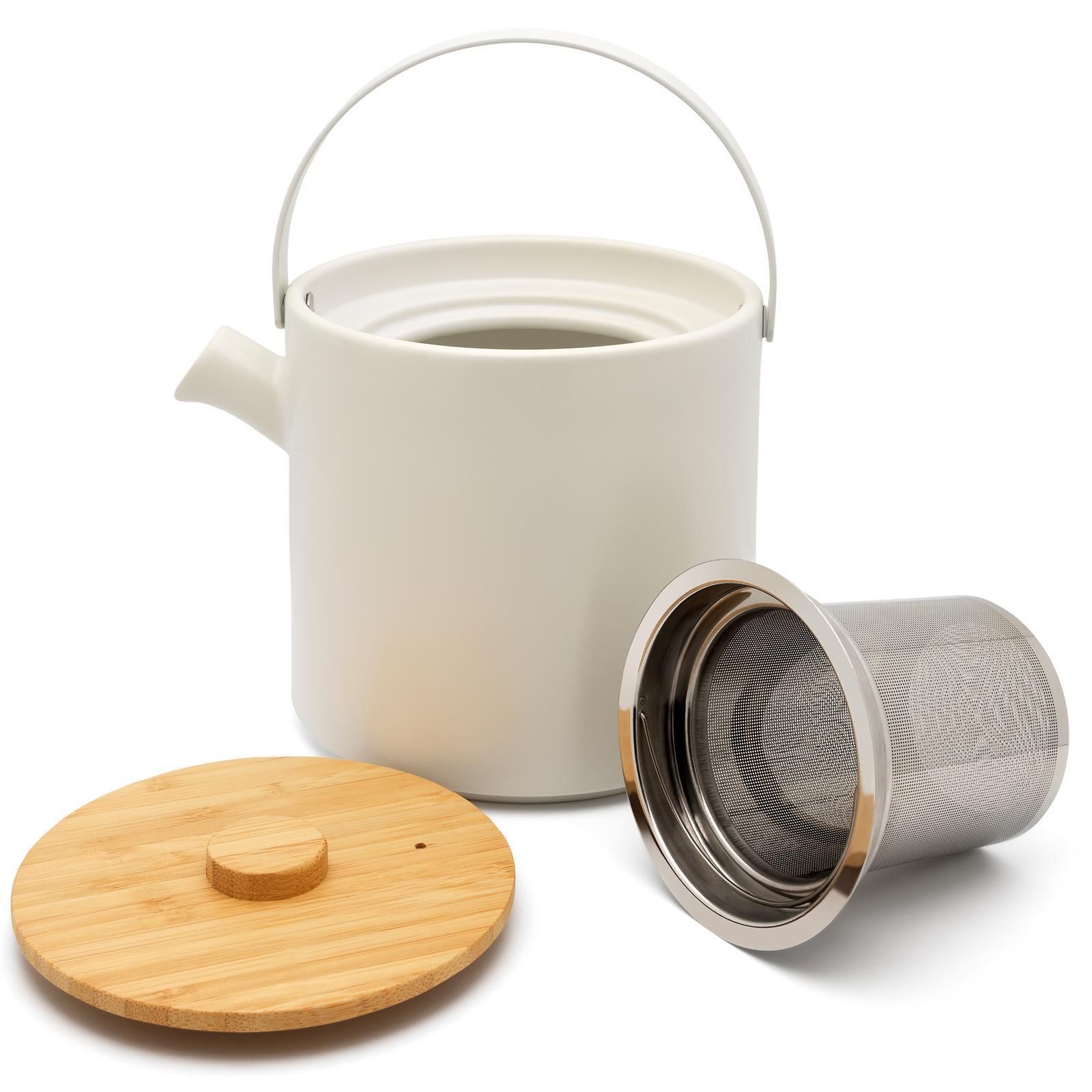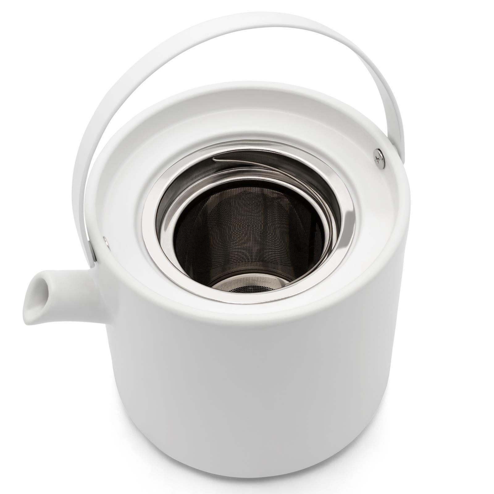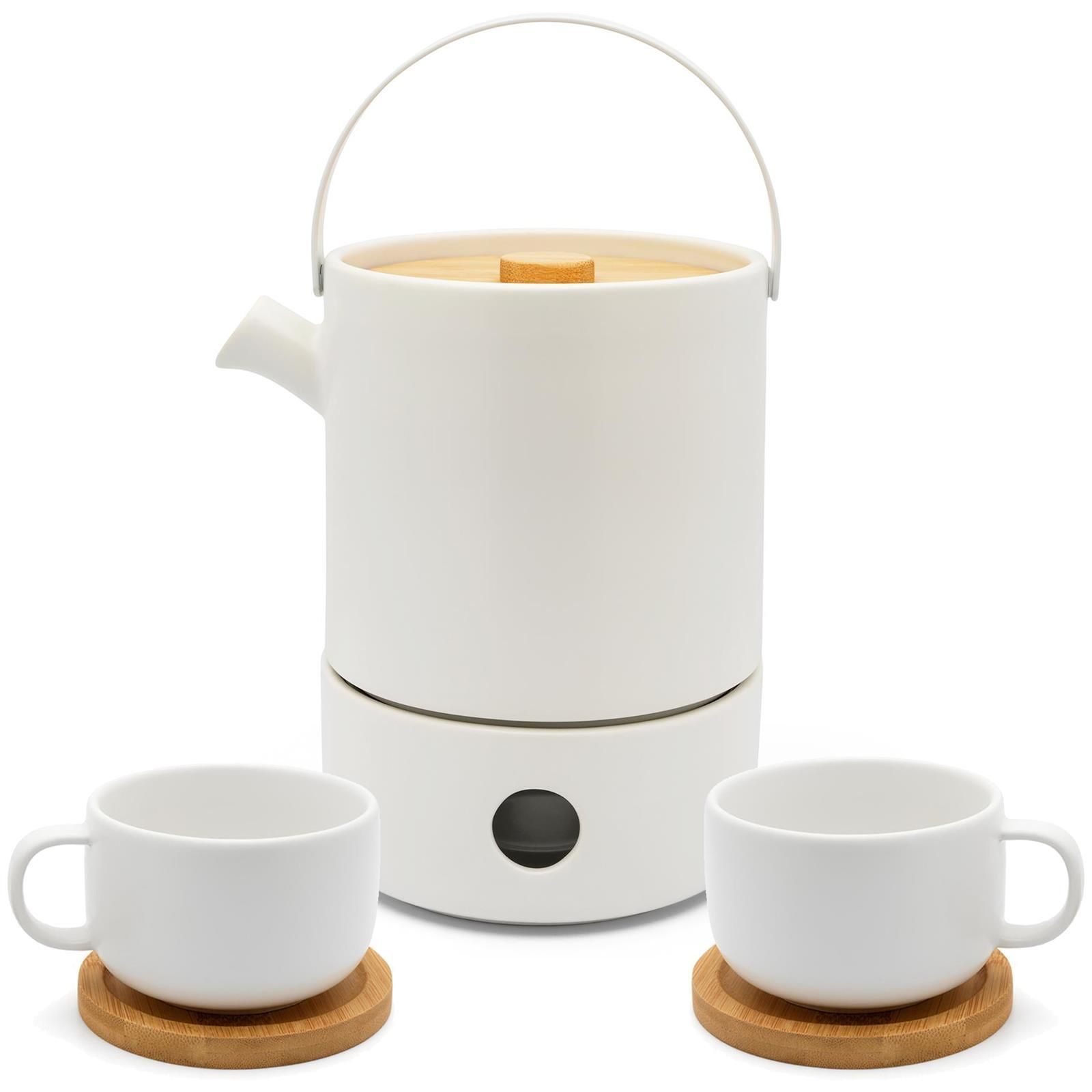 Bredemeijer Bredemeijer Keramik Teekanne 1,2 L Sieb Steingut Kanne weiß mit Stövchen & 2 Tee-Tass